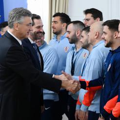 SLAVONSKI BROD - Župan Danijel Marušić, sa svojim je zamjenikom Markom Šimićem, danas u goste primio člana Hrvatske futsal reprezentacije, Oriovčanina Antonija Sekulića, kako bi mu čestitao na osvojenoj bronci na Europskom prvenstvu.