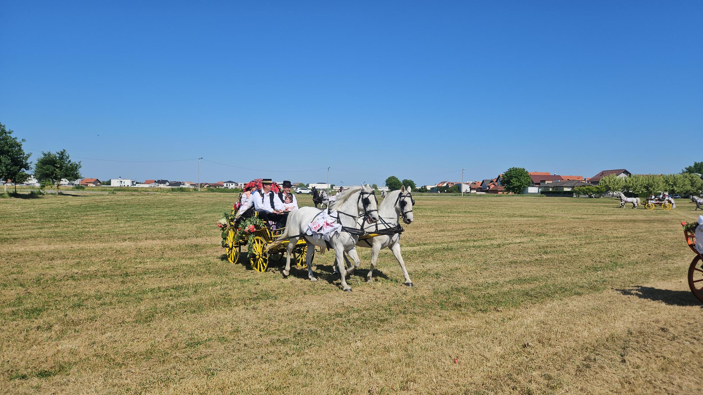 - Imamo svoju zapregu iz '54. godine. Pripreme s ukrašavanjem trajale su sigurno tri dana. Teško je cijeli dan biti na suncu, ali trudimo se. Imamo dvanaest konja kod kuće. Došli smo iz Gradišta. - kazala je osamnaestogodišnja Valerija Topić čija je cijela obitelj bila u kolima, a koju smo ranije ove godine susreli i kao konjanicu na pokladnom jahanju u Velikoj Kopanici.