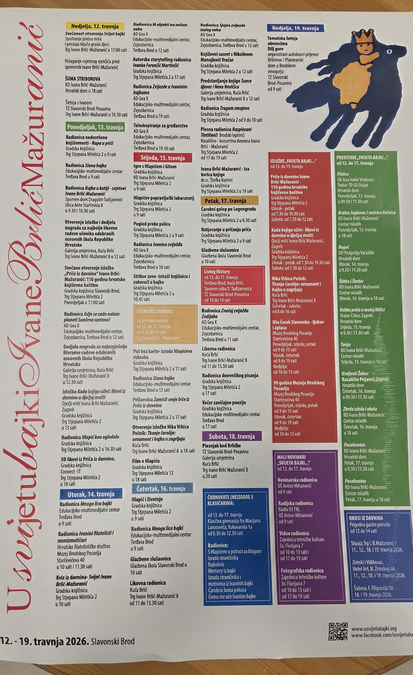 SLAVONSKI BROD - Od nedjelje, 12. travnja, Slavonski Brod ključeve grada predaje u ruke najmlađih Brođana. Tada, naime, počinje još jedan Svijet bajki koji će trajati punih tjedan dana - sve do sljedeće nedjelje, 19. travnja. U Kući Brlić programe su danas predstavile ravnateljice gradskih ustanova u kulturi - Ružica Bobovečki (Gradska knjižnica), Sanja Nuhanović (Kazališno-koncertna dvorana I.B.M.) te Romana Tekić (Galerija umjetnina Grada Slavonskog Broda), uz podršku direktorice Turističke zajednice područja Slavonski Brod - Posavina, Biljane Lončarić i gradskog pročelnika za društvene djelatnosti, Ivana Holika.