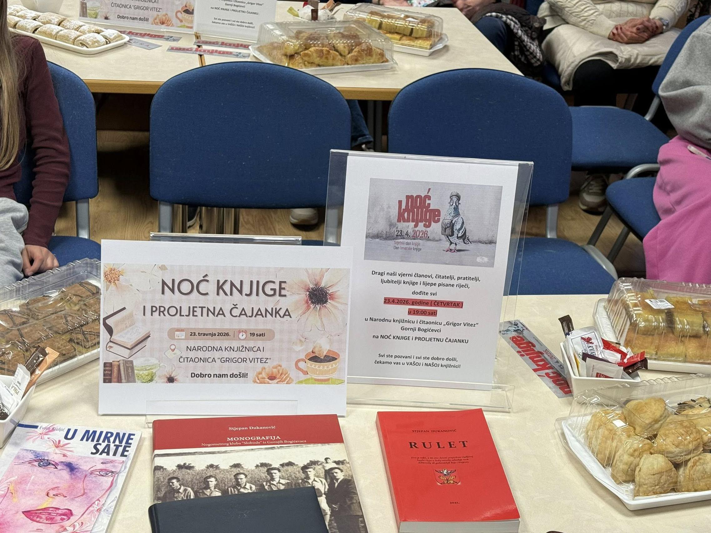 GORNJI BOGIĆEVCI - U sklopu manifestacije Noć knjige 23. travnja 2026. u Narodnoj knjižnici i čitaonici „Grigor Vitez” u Gornjim Bogićevcima održana je još jedna tradicionalna proljetna čajanka, koja je i ove godine okupila brojne ljubitelje pisane riječi i ugodnog druženja.