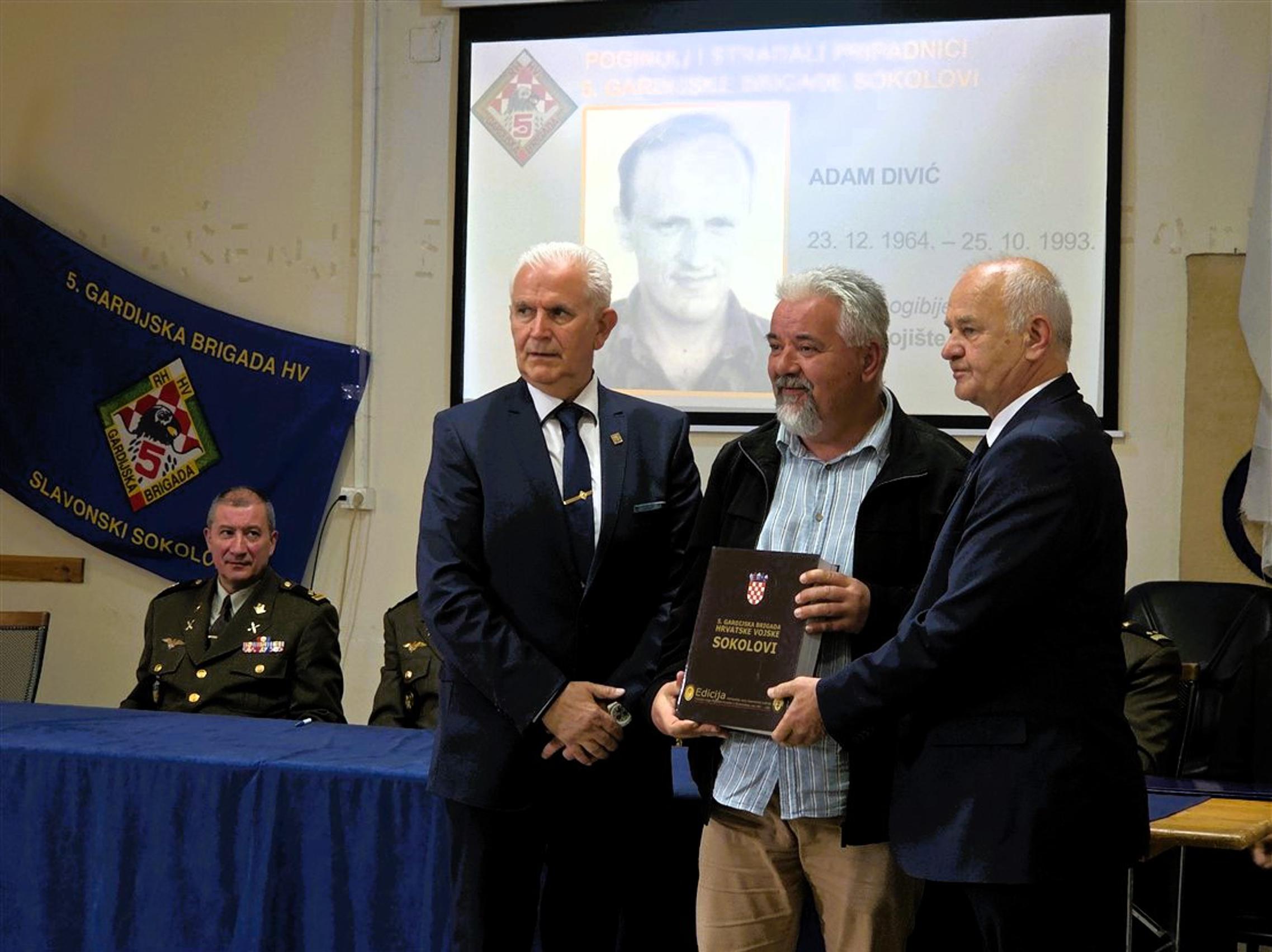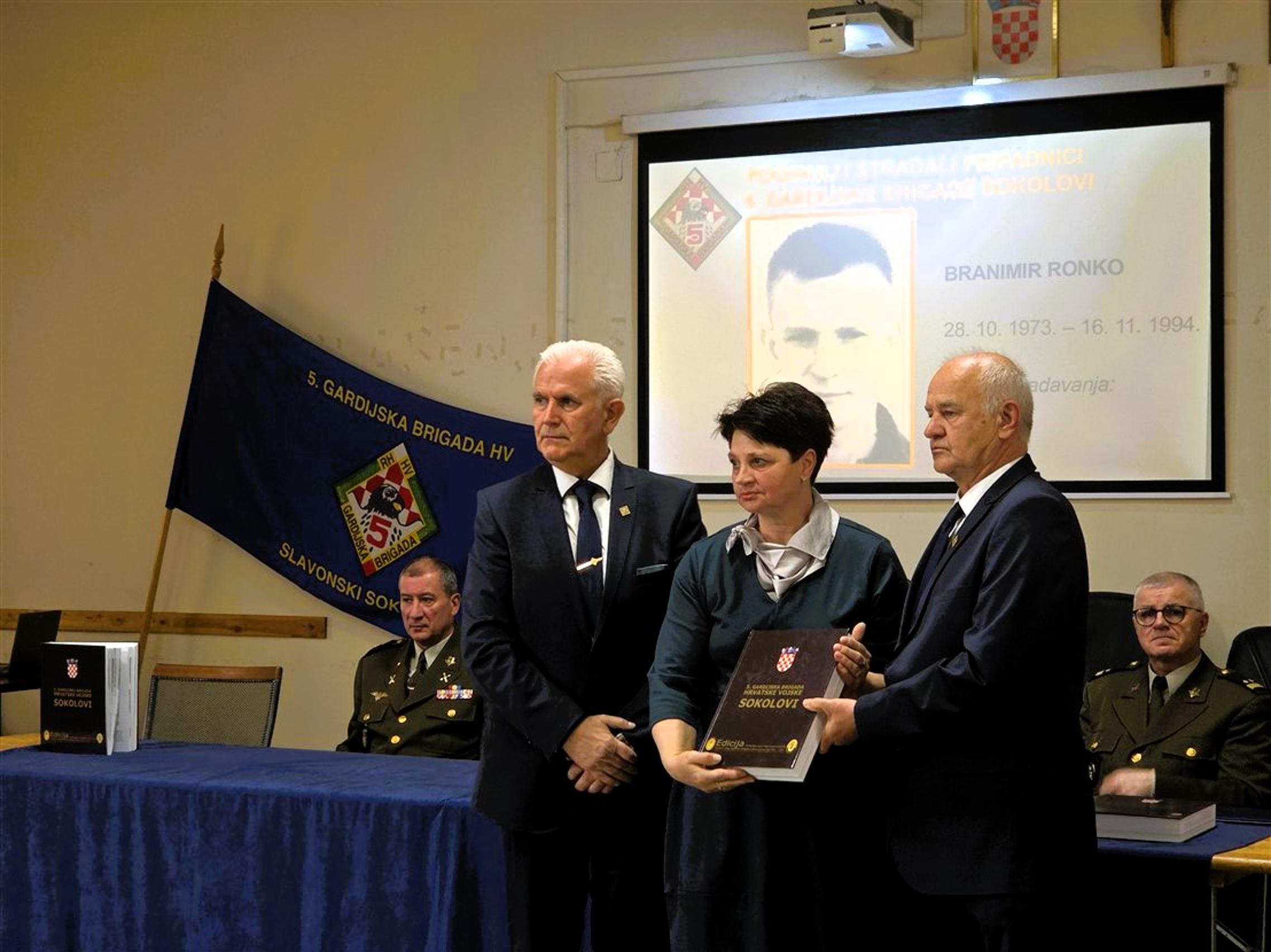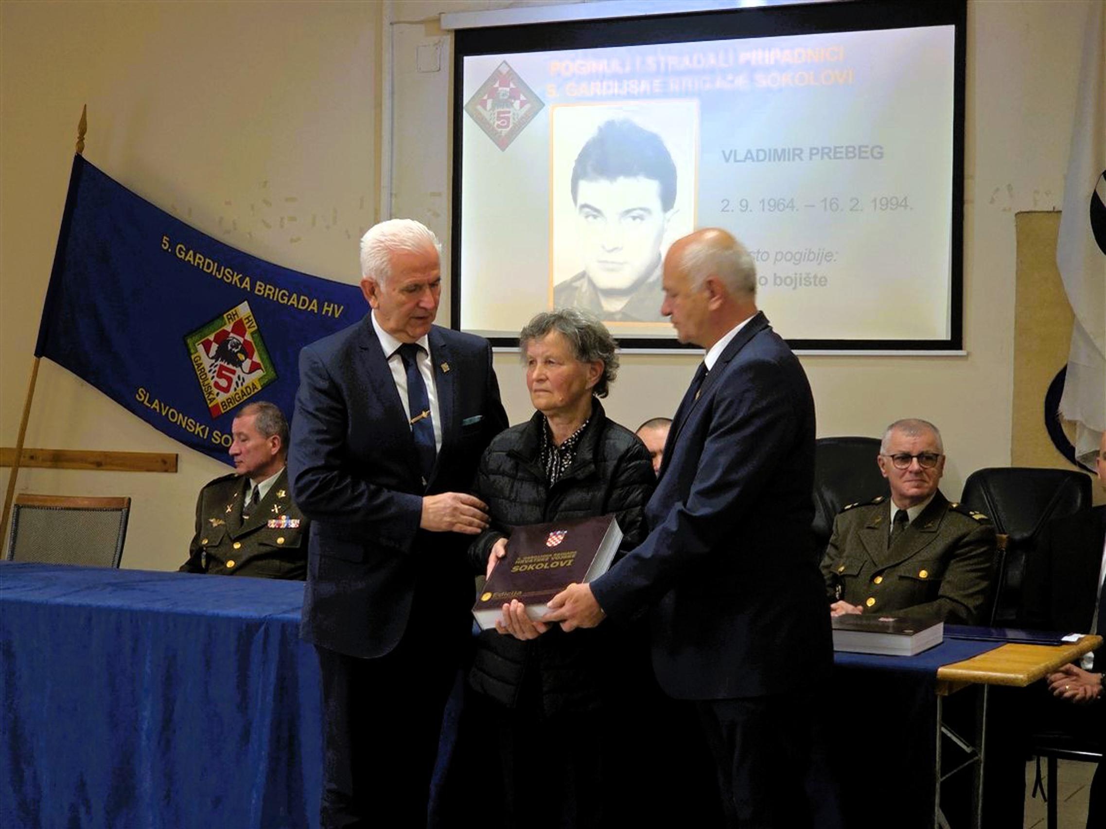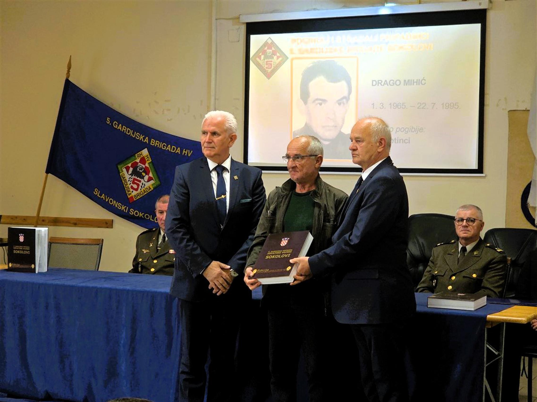 Nakon predstavljanja monografije, članovima obitelji poginulih pripadnika 5. gbr HV-a, predstavnicima županijskih i gradskih vlasti kao i predstavnicima raznih društvenih i kulturnih organizacija, primjerak knjige svečano su uručili umirovljeni general bojnik Ivan Kapular (ratni zapovjednik brigade) i umirovljeni general bojnik Živko Budimir.