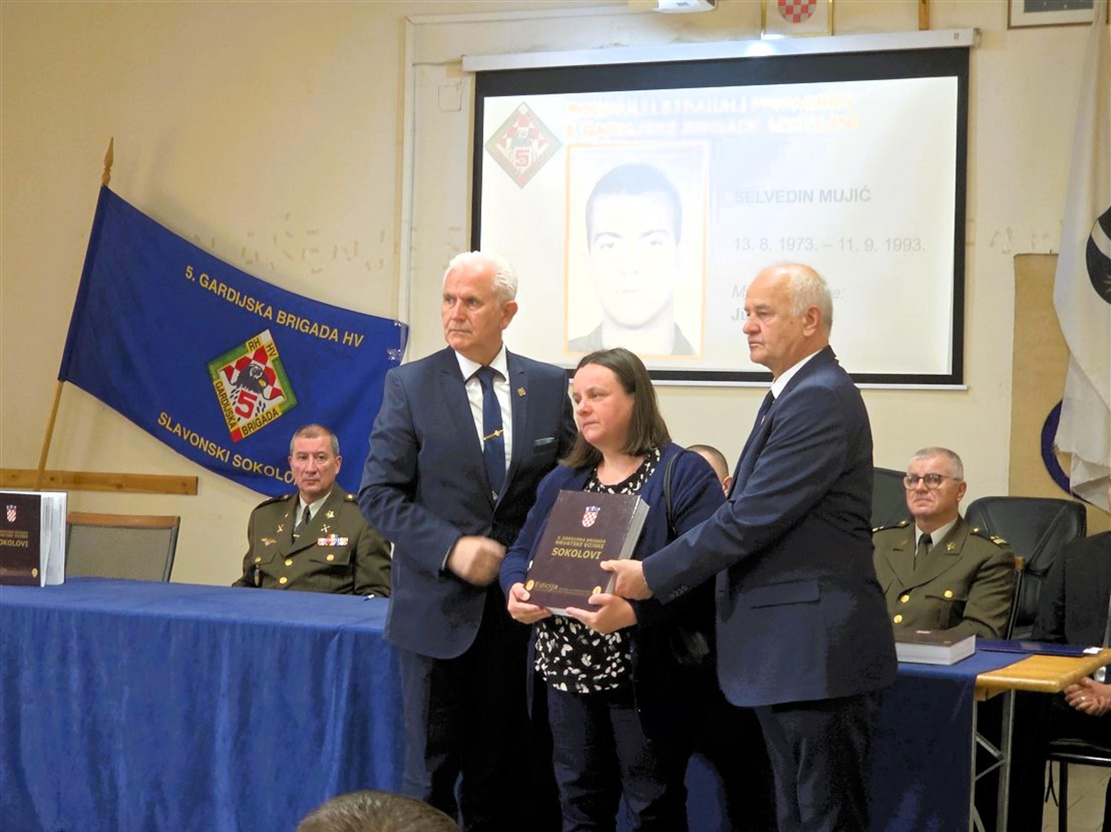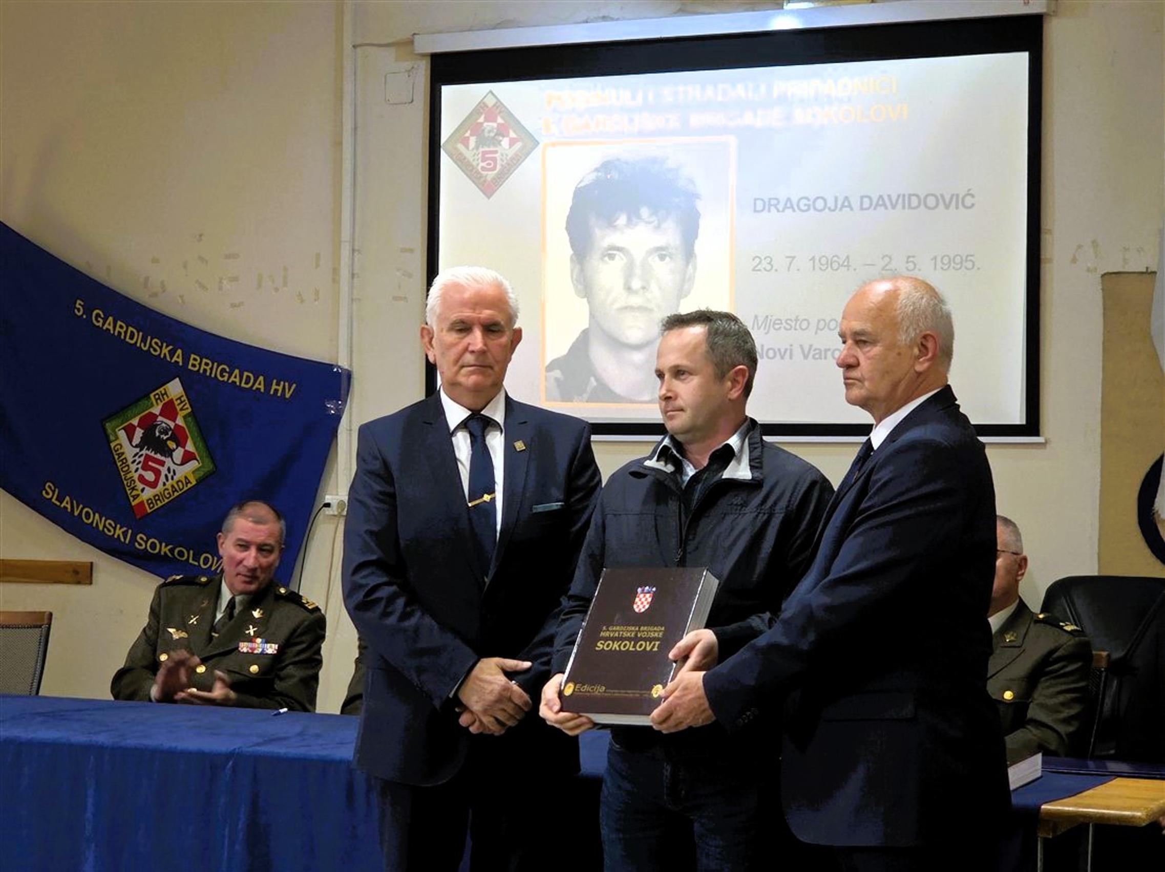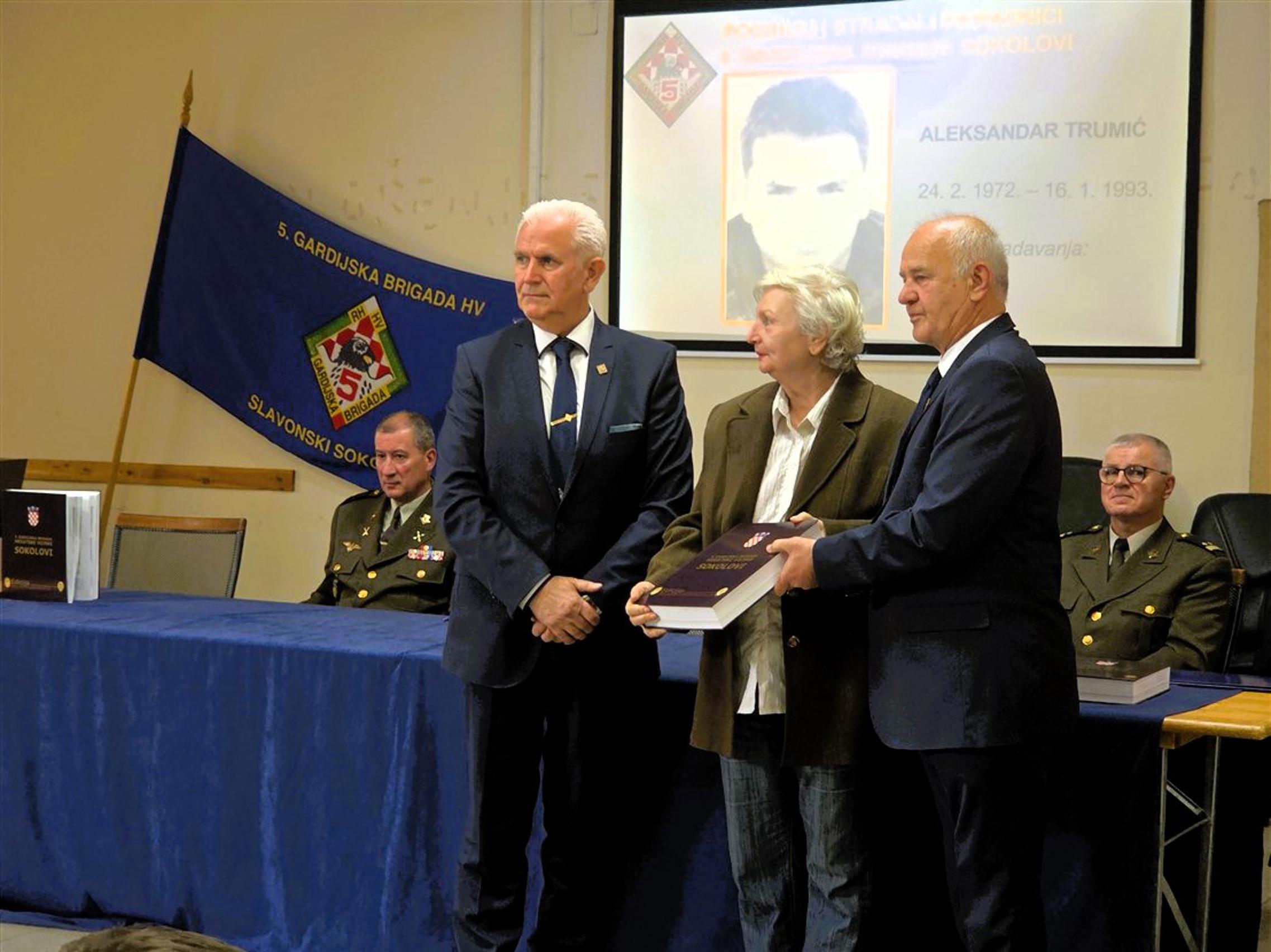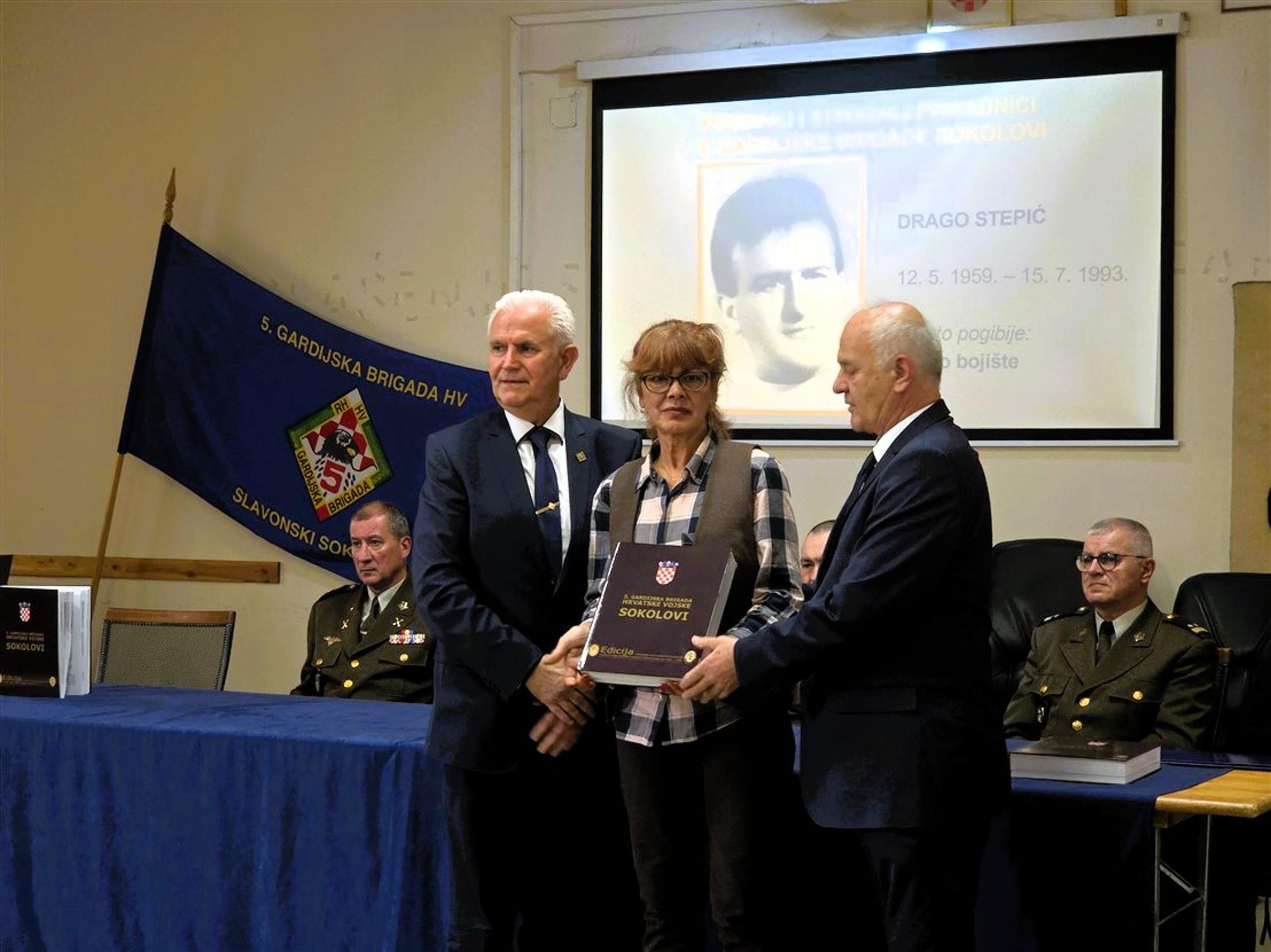 Nakon predstavljanja monografije, članovima obitelji poginulih pripadnika 5. gbr HV-a, predstavnicima županijskih i gradskih vlasti kao i predstavnicima raznih društvenih i kulturnih organizacija, primjerak knjige svečano su uručili umirovljeni general bojnik Ivan Kapular (ratni zapovjednik brigade) i umirovljeni general bojnik Živko Budimir.