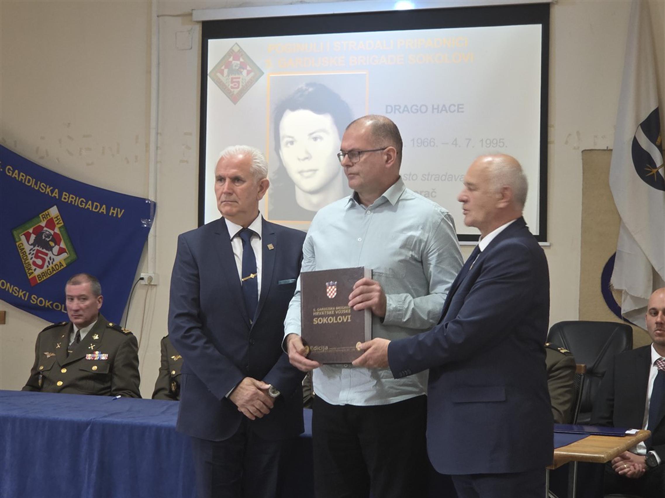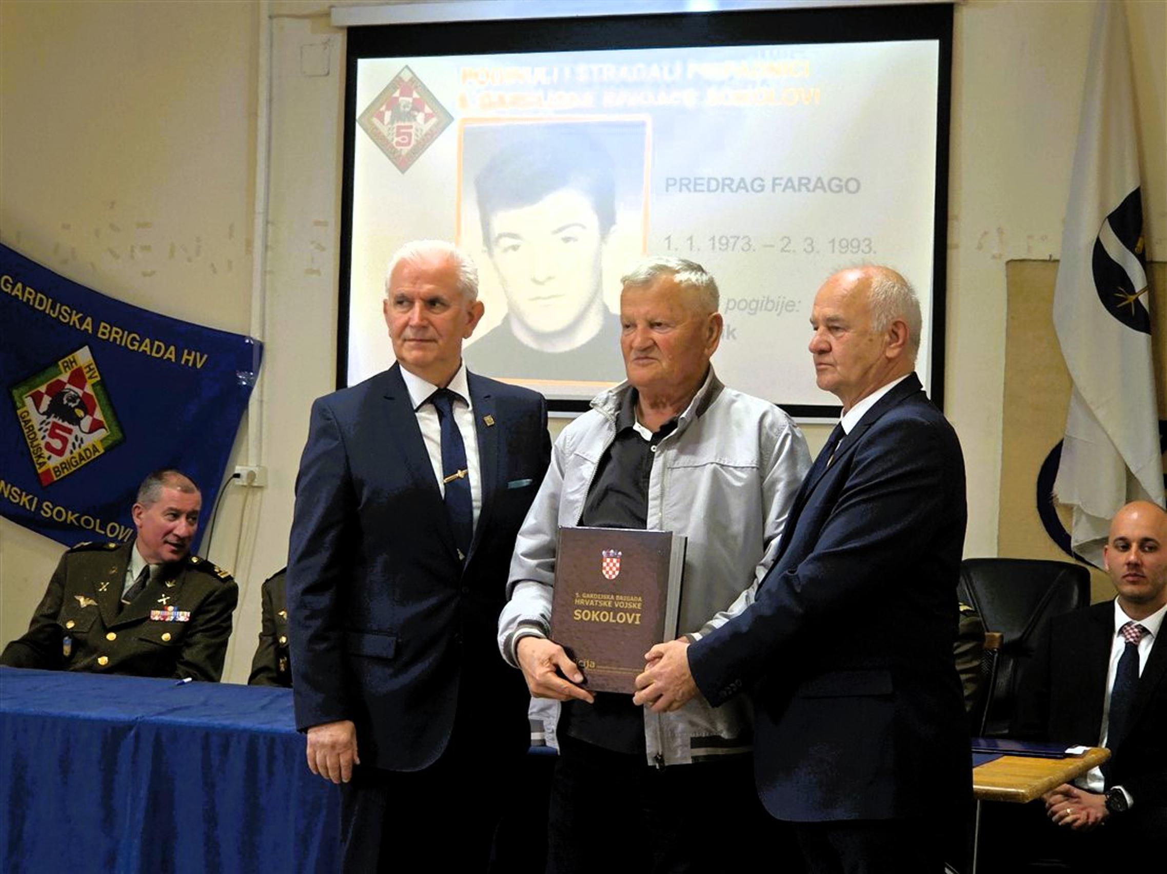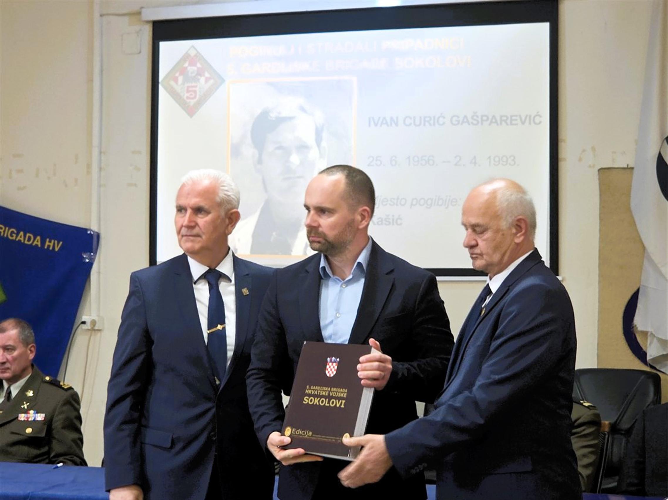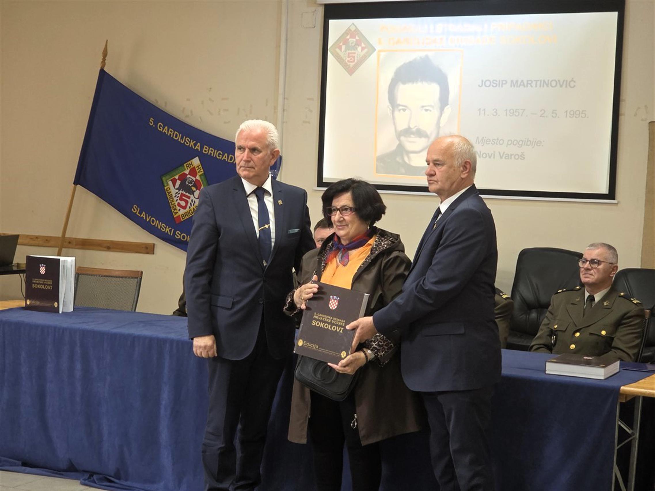 Nakon predstavljanja monografije, članovima obitelji poginulih pripadnika 5. gbr HV-a, predstavnicima županijskih i gradskih vlasti kao i predstavnicima raznih društvenih i kulturnih organizacija, primjerak knjige svečano su uručili umirovljeni general bojnik Ivan Kapular (ratni zapovjednik brigade) i umirovljeni general bojnik Živko Budimir.