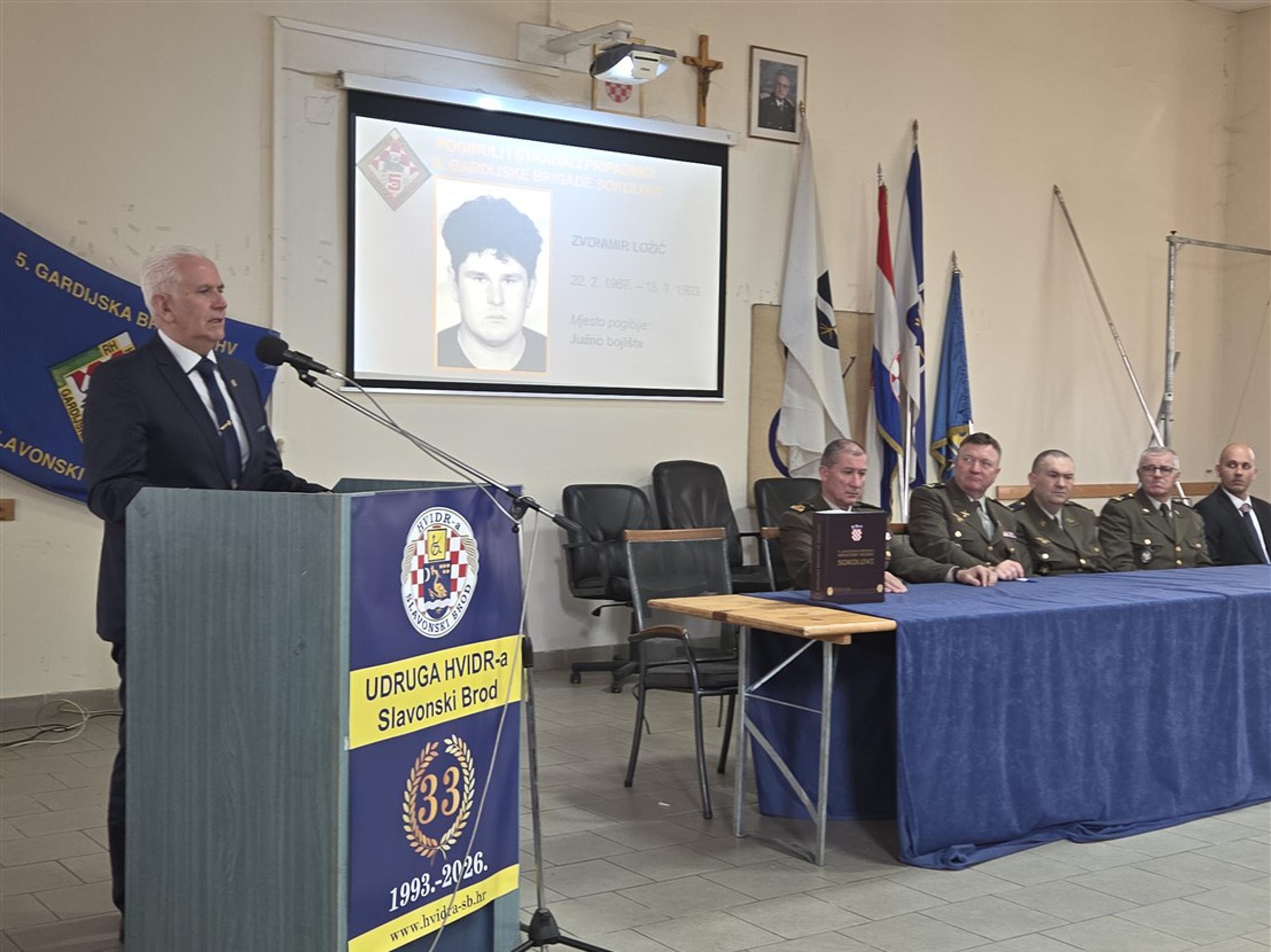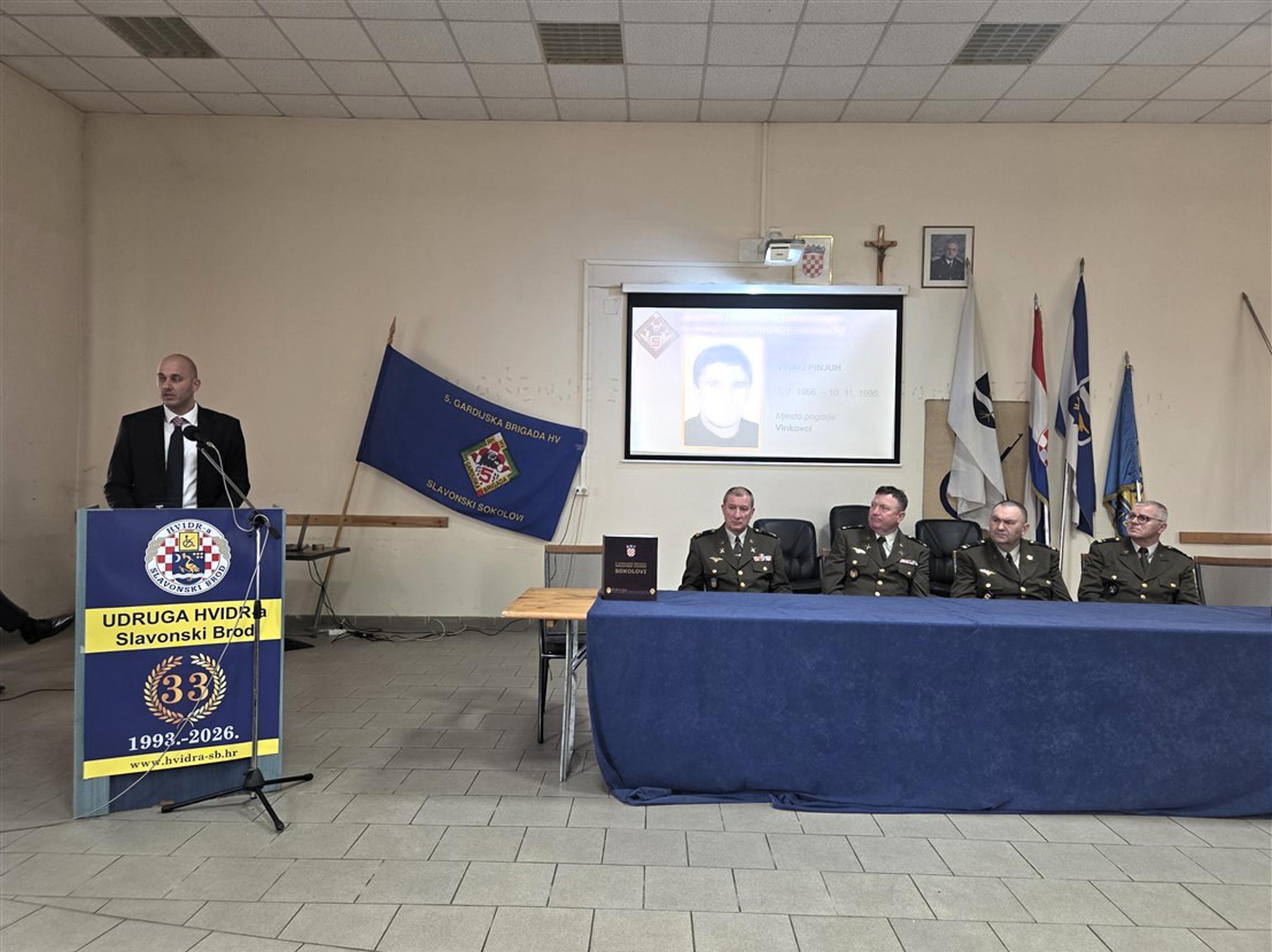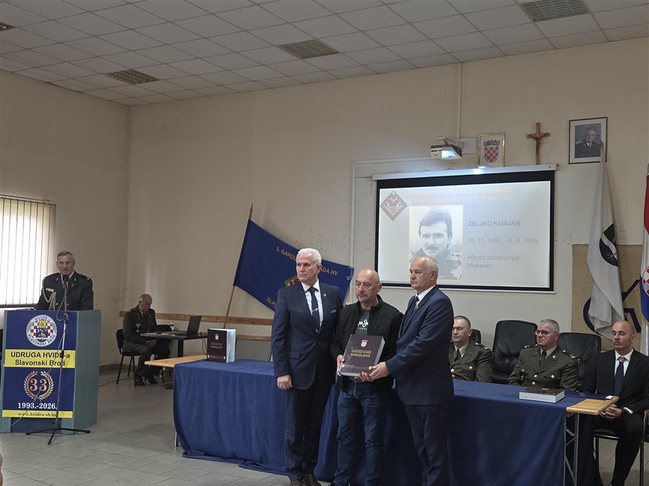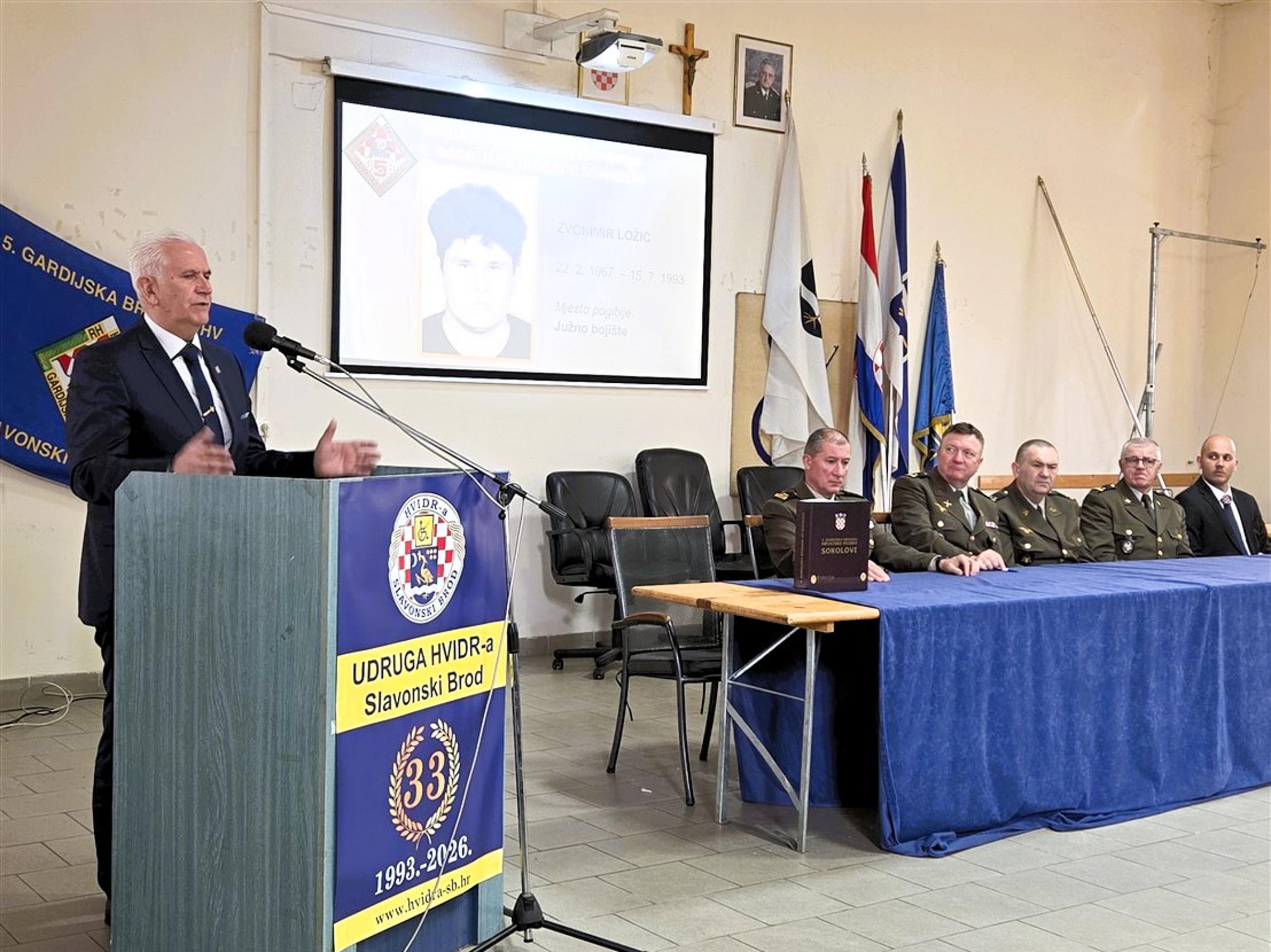SLAVONSKI BROD – Klub ratnih zapovjednika i viših časnika Udruge veterana 5. gbr HV „Sokolovi“ organizirao je u srijedu 25. ožujka 2026. u Domu HVIDRA-e u Slavonskom Brodu predstavljanje monografije o svojoj brigadi. Izdavač knjige je Ministarstvo obrane Republike Hrvatske i ona je nastala kao sastavni dio nakladničke cjeline pod nazivom Edicija monografija vojno-redarstvenih postrojbi Oružanih snaga Republike Hrvatske iz Domovinskog rata 1991.-1996.