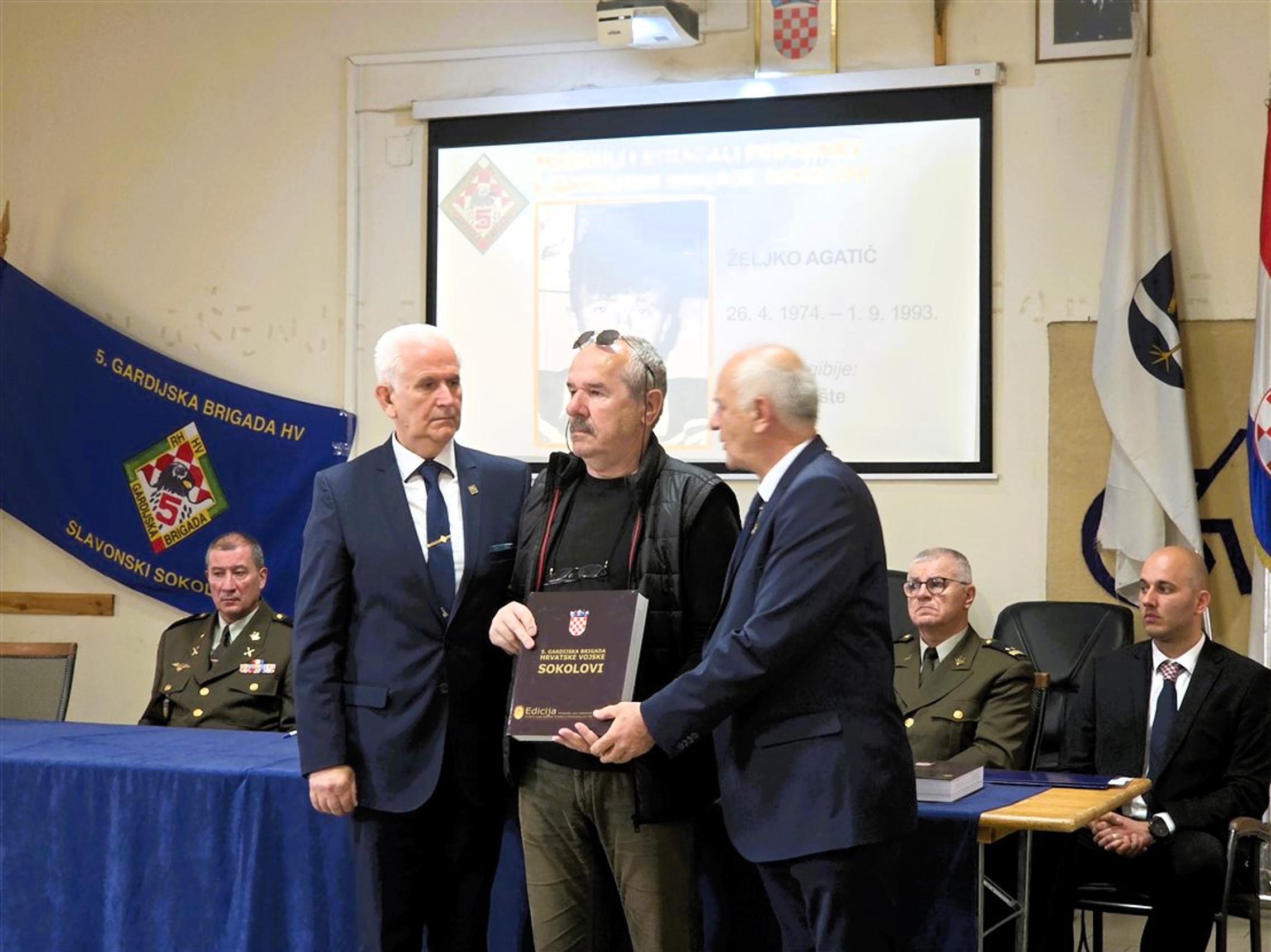 – Bili smo i u Operaciji “Oluja” sa manjim snagama te u Operaciji “Fenix”. Ali isto tako bili smo glavna okosnica za posljednju napadnu operaciju koja se trebala dogoditi, Operaciju “Dunav”, gdje 10. studenog 1995. pogiba Vinko Pinjuh. On je osljednji pripadnik hrvatske vojske u borbenom djelovanju u Domovinskom ratu. Svi znamo i svima nam je poznato ime Josipa Jovića, prve žrtve Domovinskog rata. Ovaj pripadnik 5. gbr je posljednja žrtva Domovinskog rata poginula u borbenom djelovanju. Borit ćemo se kao 5. gbr, kao Klub ratnih zapovjednika, da to ime dobije na važnosti kao i taj događaj za našeg pripadnika. Ova monografija je naṣ̌ dug prošlosti i dar budućnosti, da se nikada ne zaboravi gdje je 5. gbr bila, koji je bio njezin značaj u svim obrambenim i oslobodilačkim operacijama hrvatske vojske. Da se zna da ih je najviše poginulo na Južnom bojištu čuvajući vjekovna ognjišta hrvatskog naroda u Bosni i Hercegovini i da niti jedna operacija nije prošla bez 5. gbr. Predstavljajući našu monografiju iznosimo pobjednički ratni put koji je čist kao suza, na koji smo svi ponosni i koji danas predstavljamo u Slavonskom Brodu. – poručio je glavni urednik monografije.