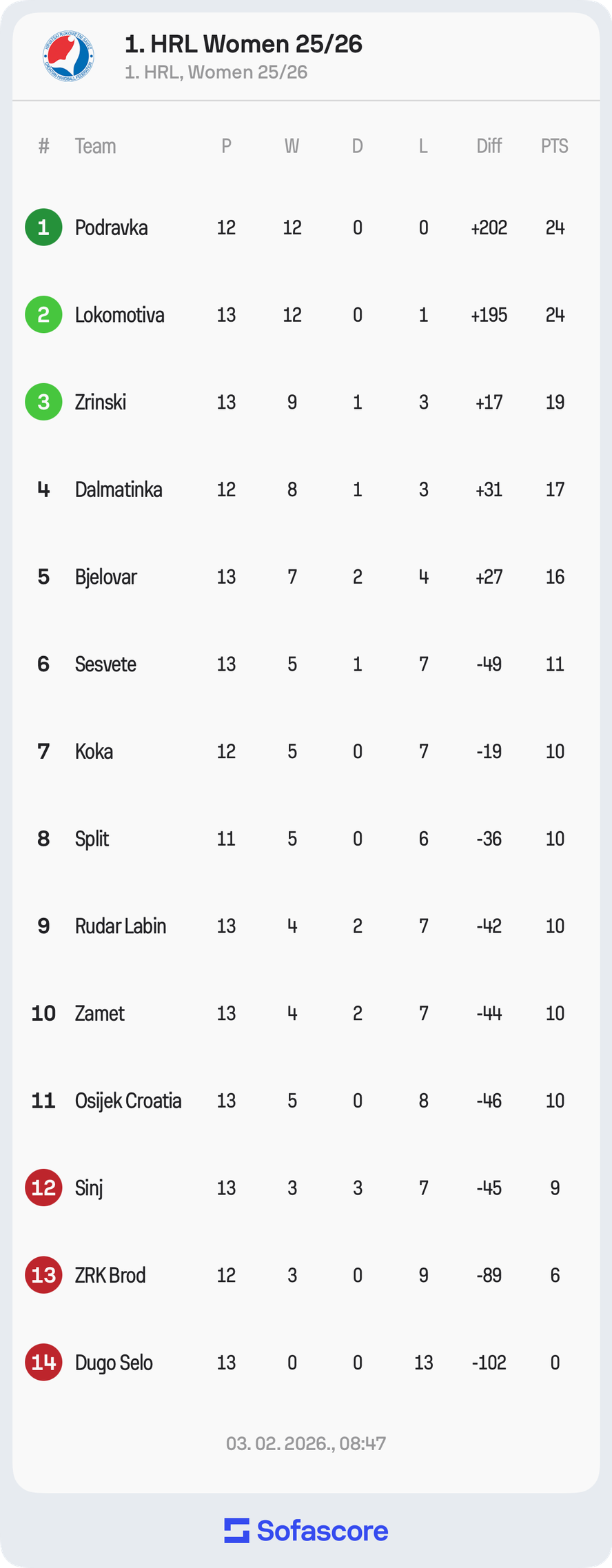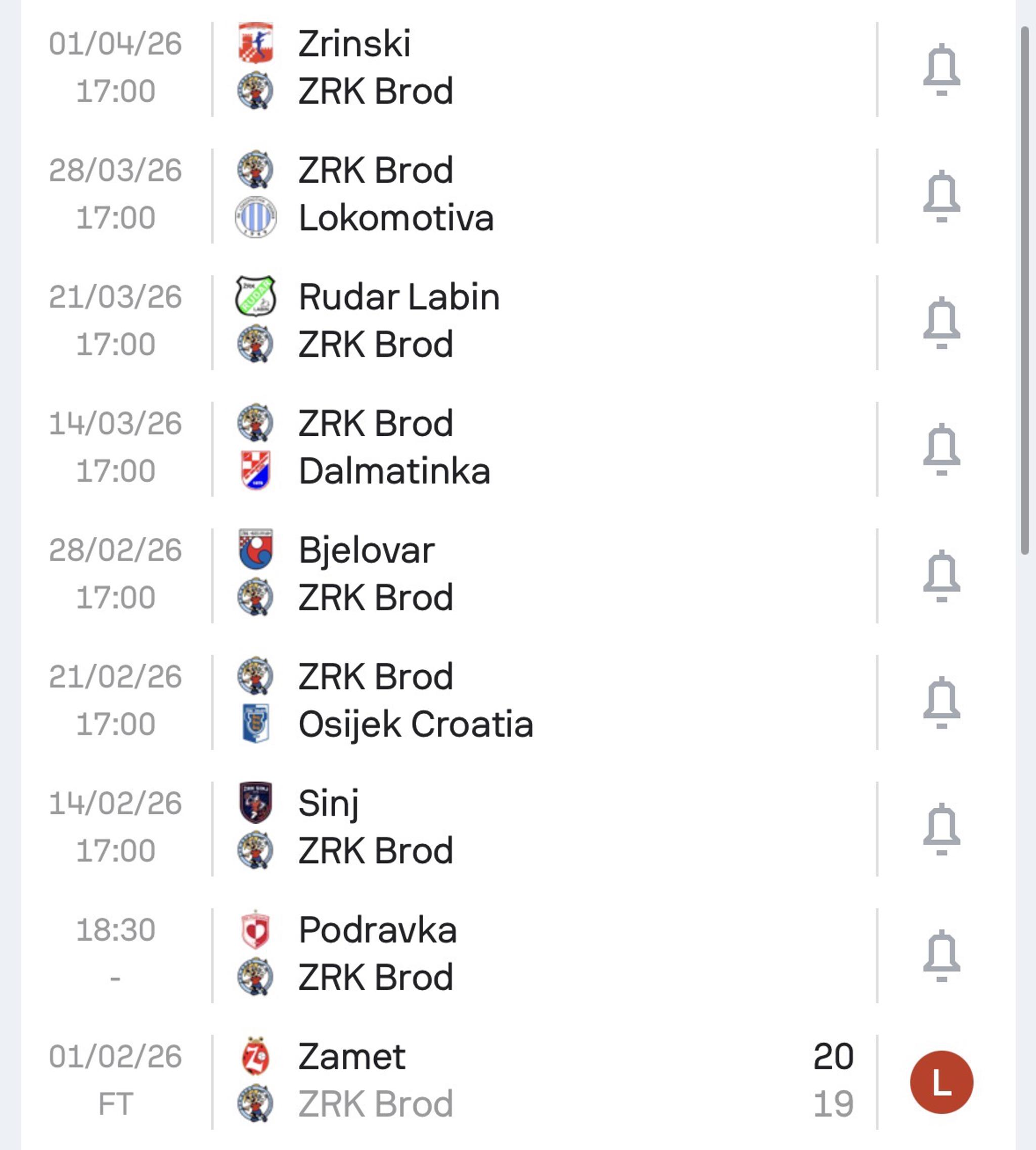 Od devet utakmica - Brođanke su pobijedile dvije - uz sedam poraza. Nakon utakmice s Podravkom, Brođanke na Valentinovo - 14. veljače, dočekuju rukometašice Sinja - rivalom za ostanak u ligi.