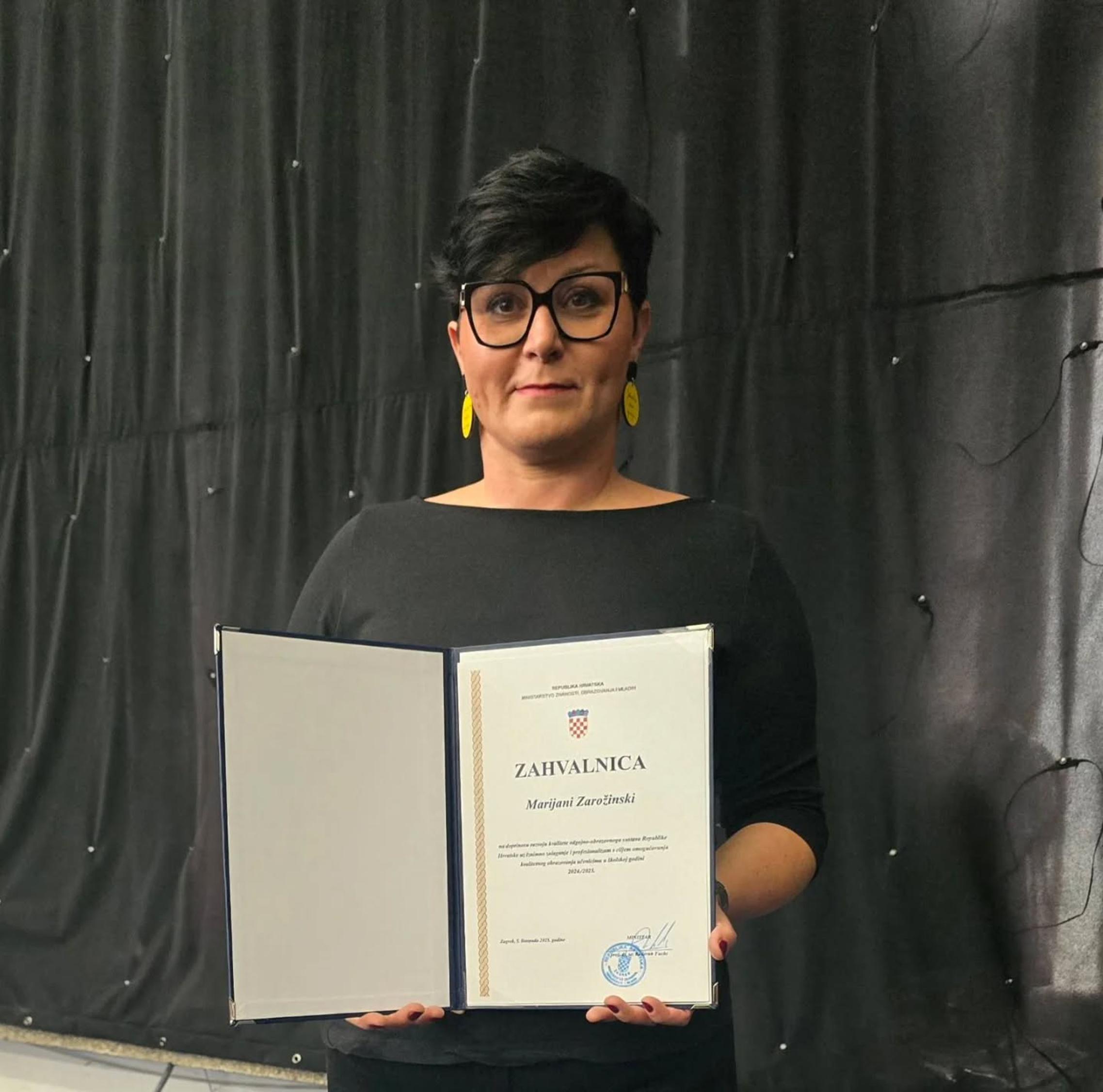 Nagrađenom djelatnicom Marijanom Zarožinski jučer se na društvenim mrežama opravdano pohvalila Industrijsko-obrtnička škola u Slavonskom Brodu te tako i medijima omogućila da cjelovito prenesu ovu divnu vijest.