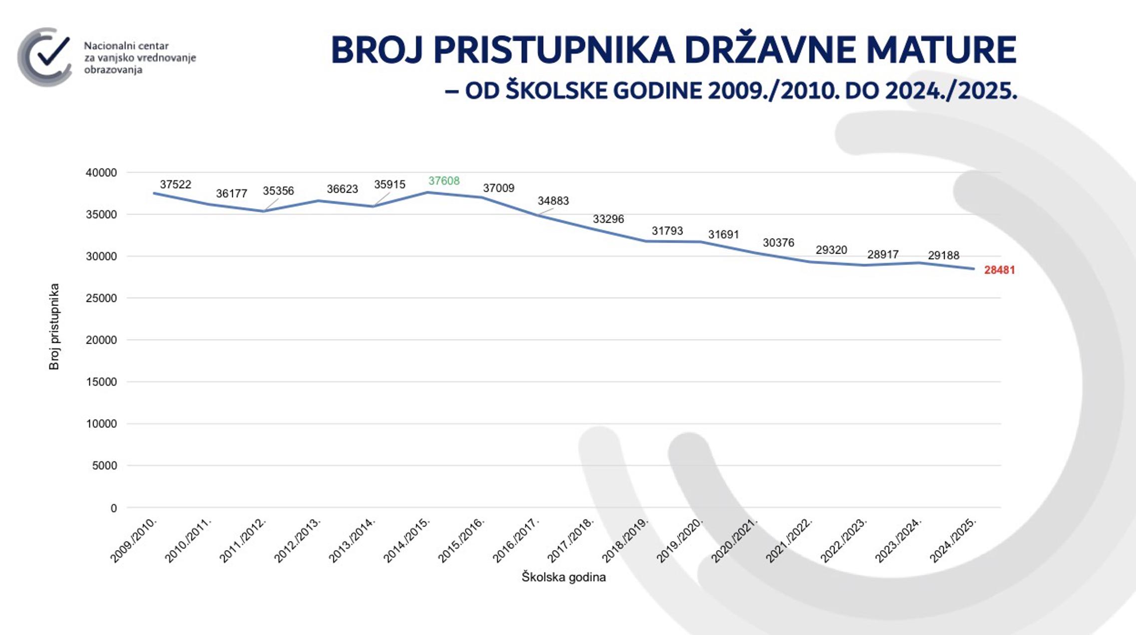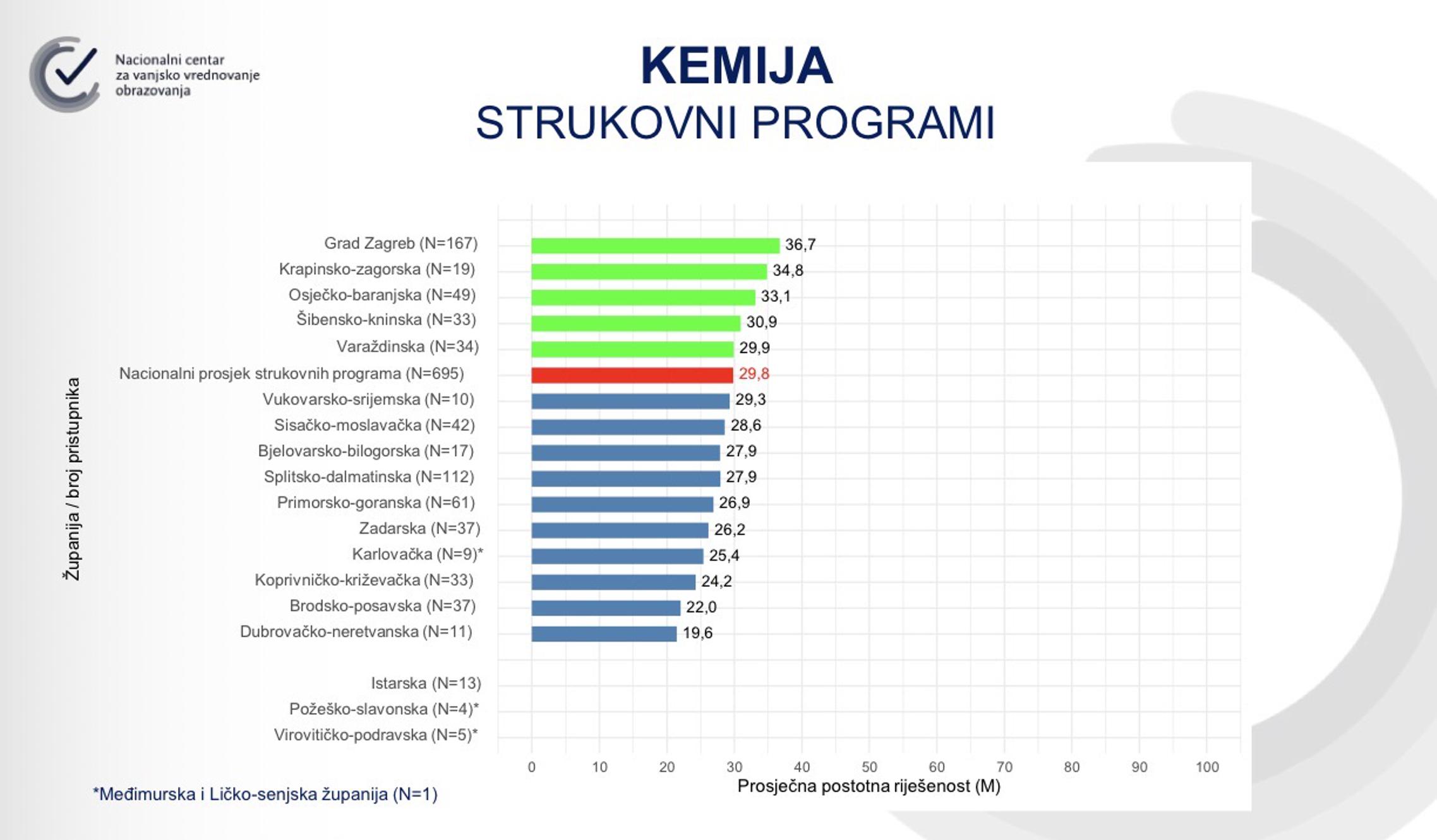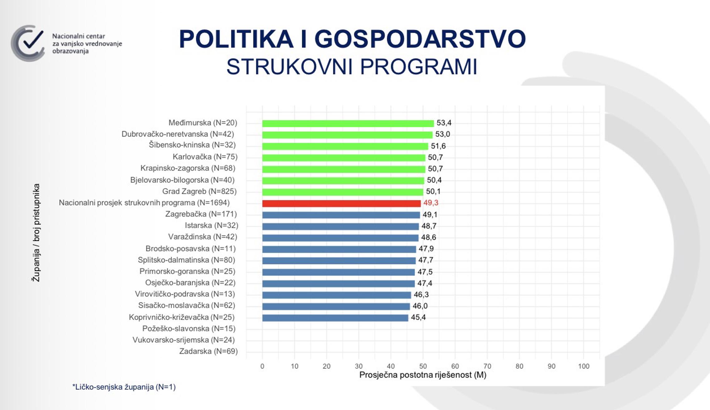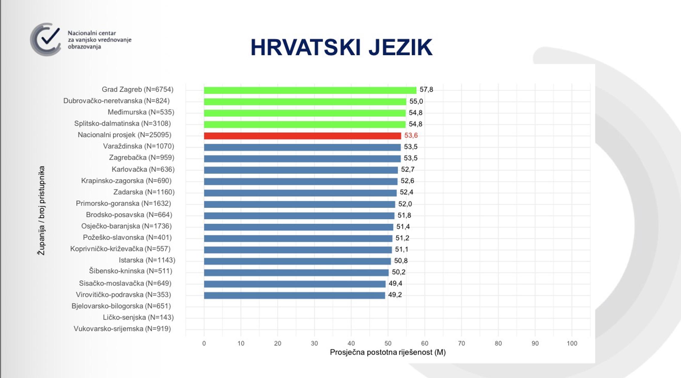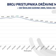 SLAVONSKI BROD - Kao i svake godine Nacionalni centar za vanjsko vrednovanje obrazovanja (NCVVO) objavio je nacionalni prosjek rezultata državne mature po županijama Republike Hrvatske. U školskoj godini 2024./2025. pripremljeni su ispiti za 27 predmeta - što je ukupno 34 ispita državne mature (uključujući višu i nižu razinu). Broj pristupnika državne mature nikada nije bio niži - samo 28.481 pristupnik, što je za 707 pristupnika manje nego u prethodnoj školskoj godini. Kao i zadnjih godina - Grad Zagreb i Međimurska županija predvode ljestvice najboljih, dok je Brodsko-posavska županija većinski ispod prosjeka Republike Hrvatske prema prosječnoj riješenosti.