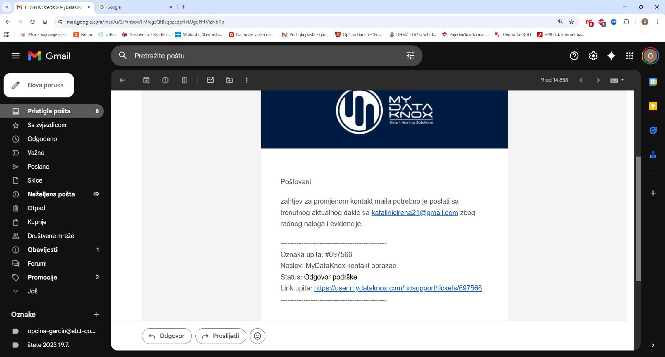 Posebno je zanimljivo da se kao jedno od ključnih pitanja na koje opozicija nije dobila odgovor isticalo pitanje inicijalnog maila za općinsku web stranicu, u kojem se navodio mail gospođe Katalinić. Upravo zbog toga zatraženo je da se za 9. sjednicu pripremi dokumentacija i prezentiraju dokazi (fotografija u prilogu).