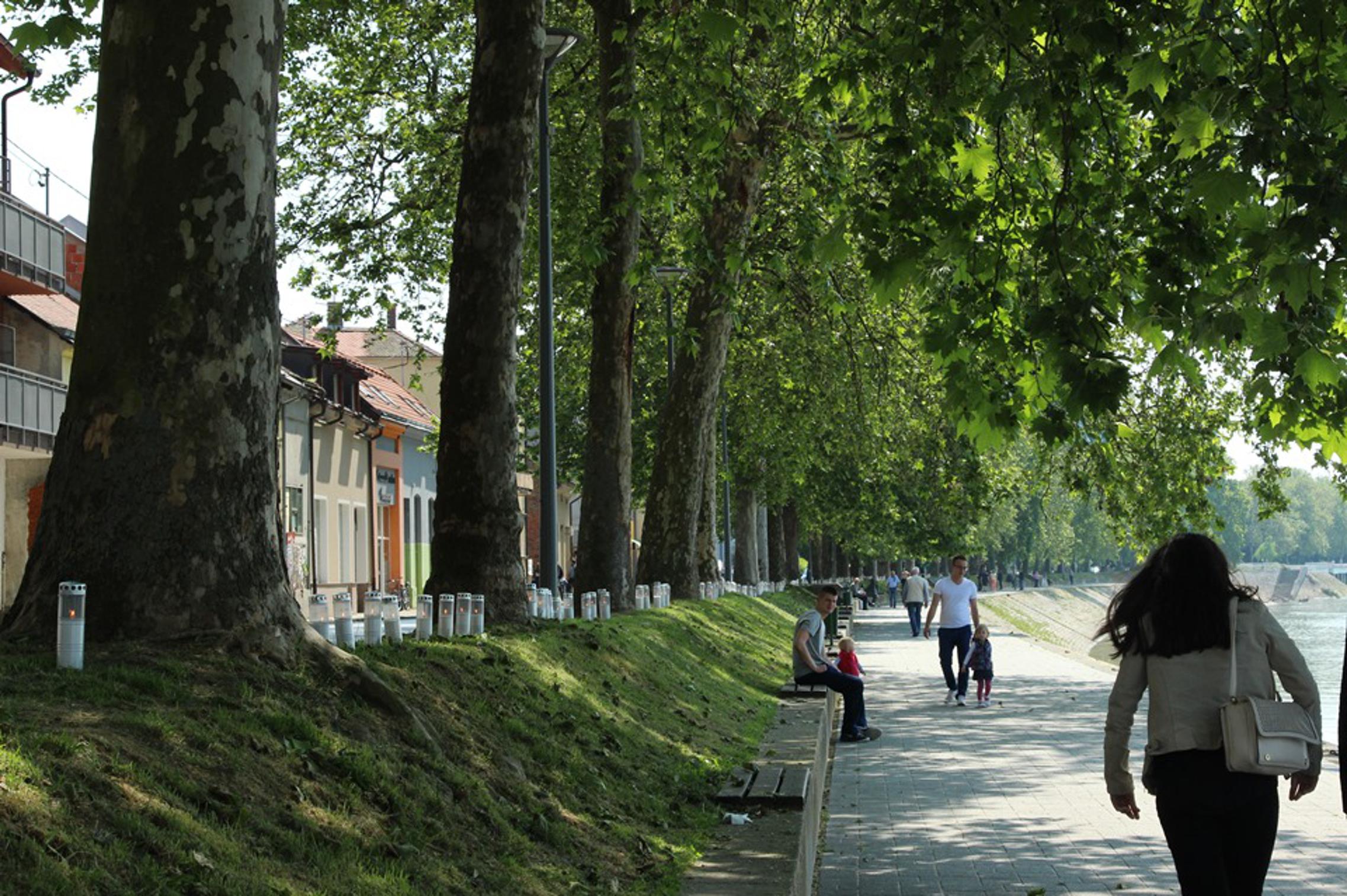 Duž slavonskobrodskog keja 402 upaljena bijela lampiona a ispred spomen obilježja "Prekinuto