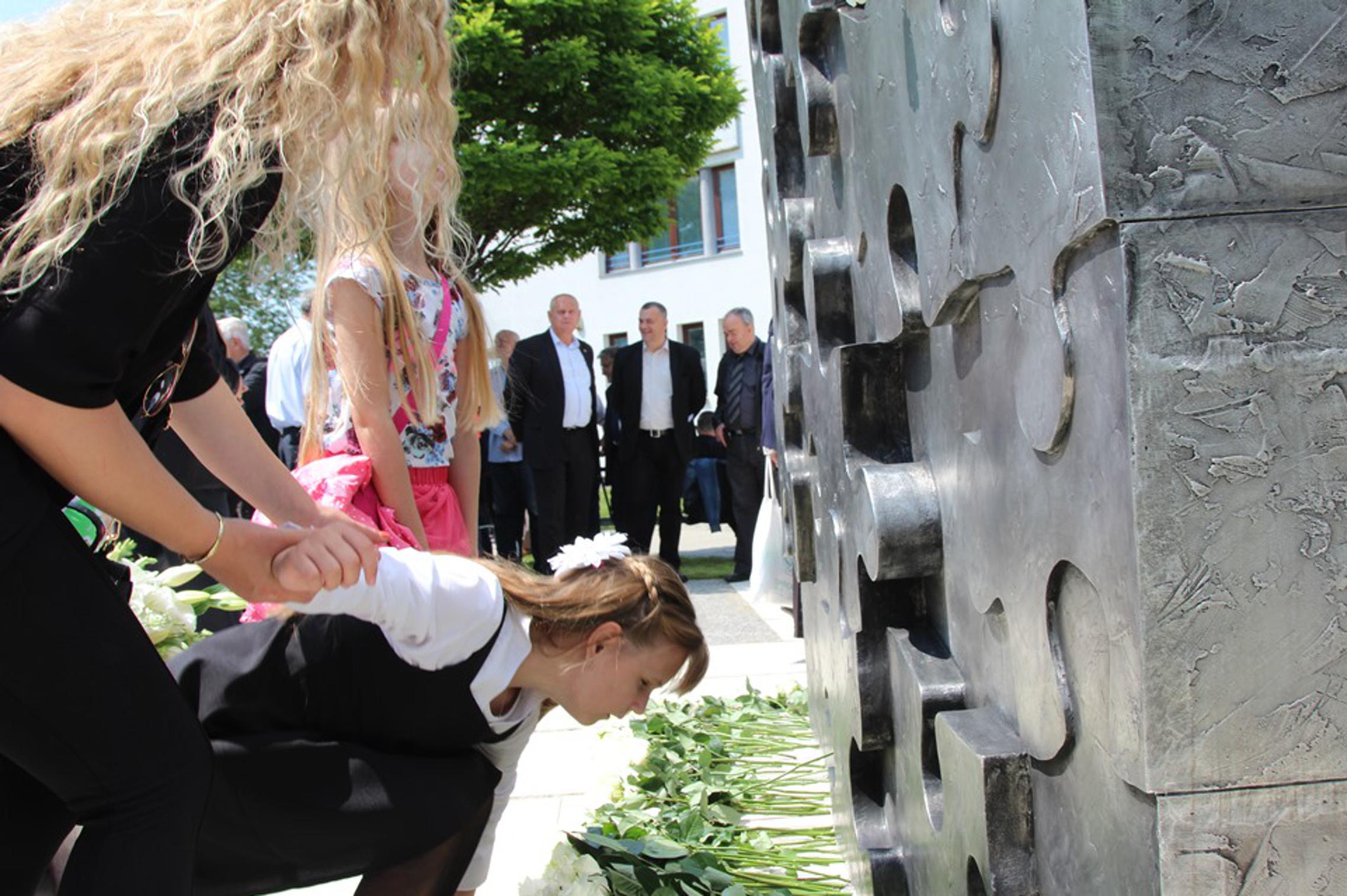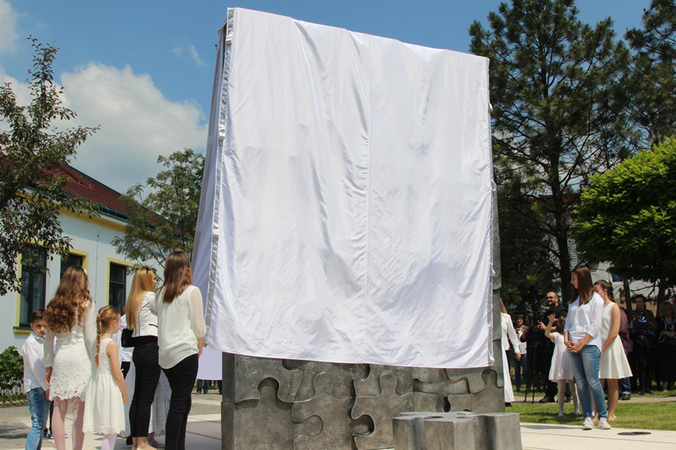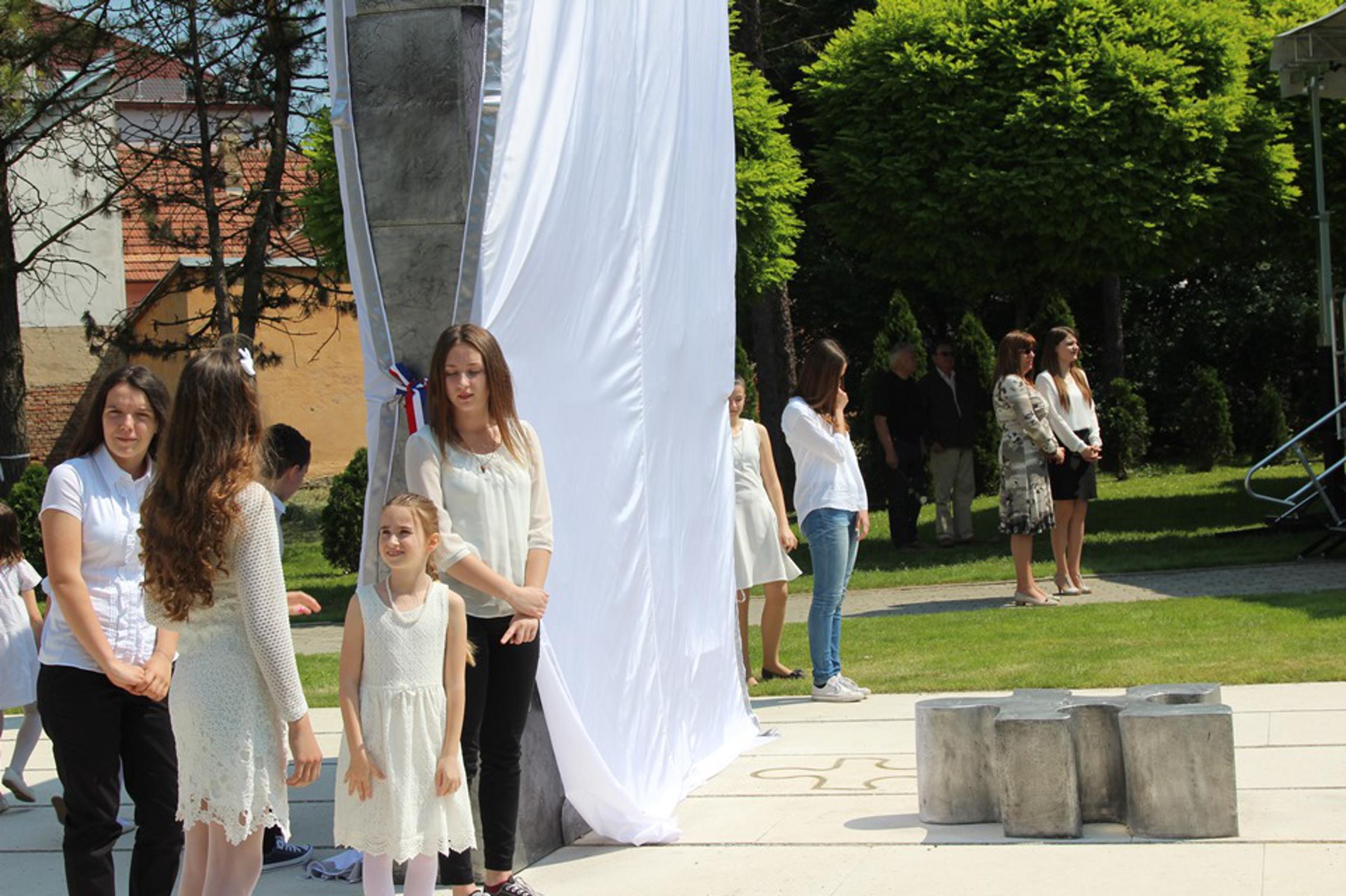 dječaka iz ovog grada, od toga njih 11 iz Osnovne škole "Hugo Badalić" ispred koje je još 2000. te godine podignuto spomen obilježje Djevojčica. Danas su i njihovi vršnjaci iz ostaliih hrvatskih gradova, iz Vukovara, Osijeka, Vinkovaca, Siska, Šibenika, Zadra, dobili spomenik, mjesto pred kojim će njihovi roditelji moći položiti cvijeće, zapaliti svijeće i u tihoj molitvi susresti se svojom prerano izgubljenom djecom. Spomenik je otkrilo 22 braće, sestara i rođaka djece poginule u Domovinskom ratu.