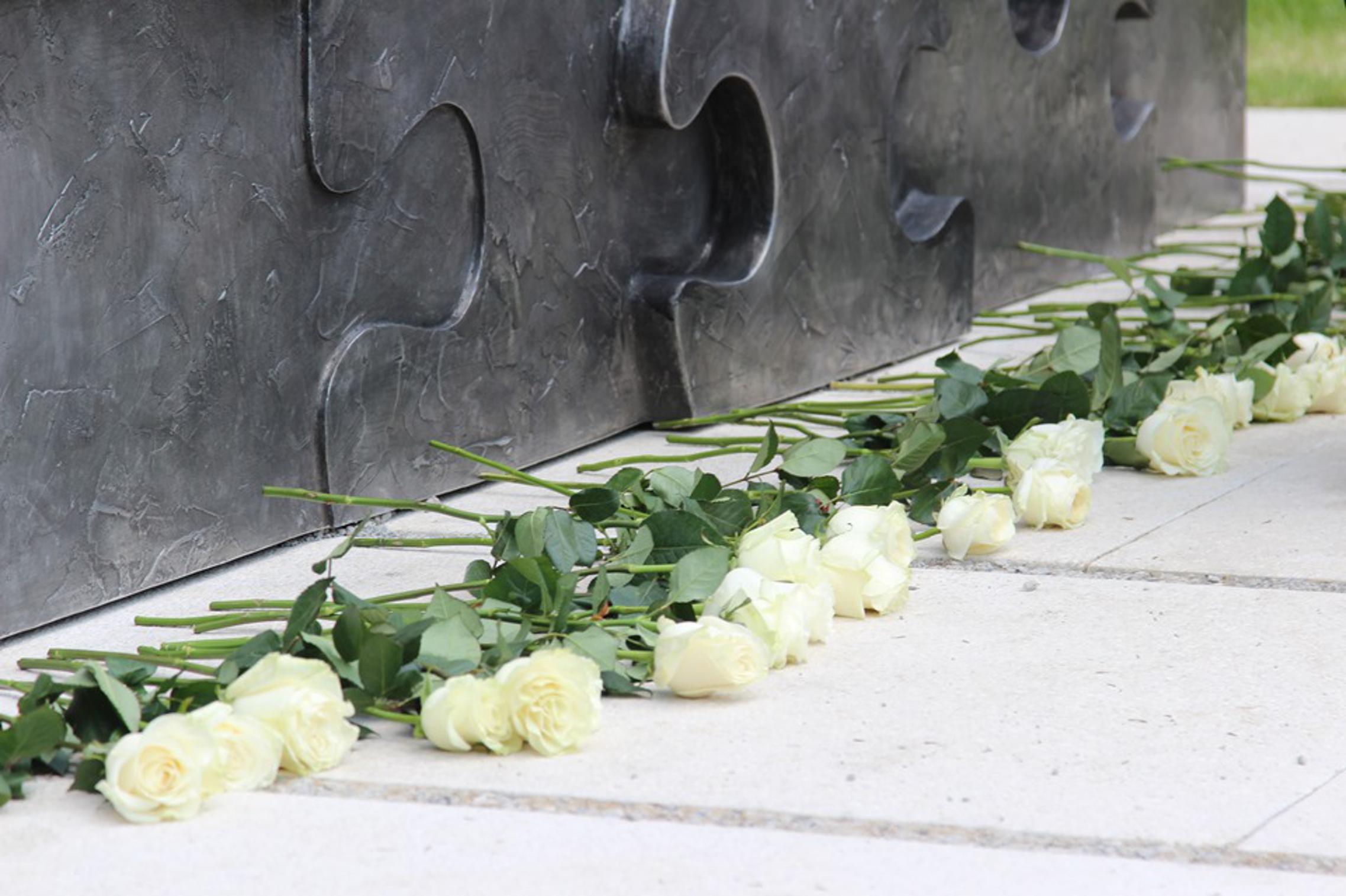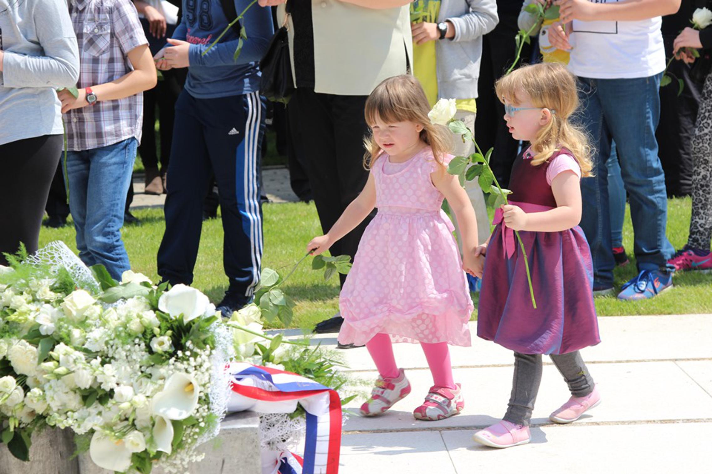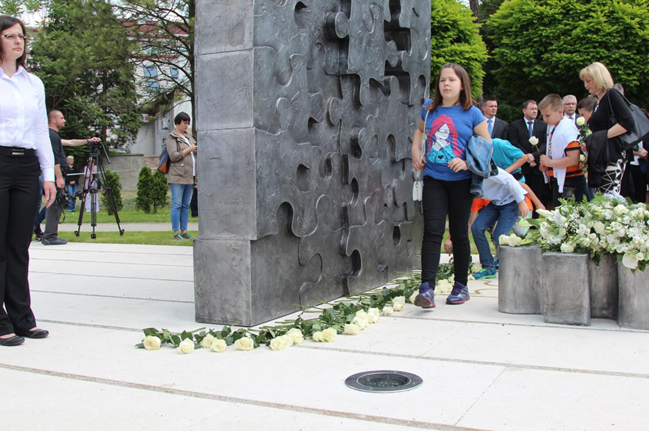 djetinjstvo", koji je idejni rad Petra Dolića i Petre Tončić Lipovščak, položene 402 bijele ruže. U znak sjećanja na 402 izgublljena dječja života. Prekinuta u trenu, u skloništima, na ljuljačkama, u igri. Najmlađoj žrtvi bilo je šest mjeseci, najstarijoj 18 godina. Slavonski Brod kao mjesto postavljanja spomen obilježja izabran je zbog