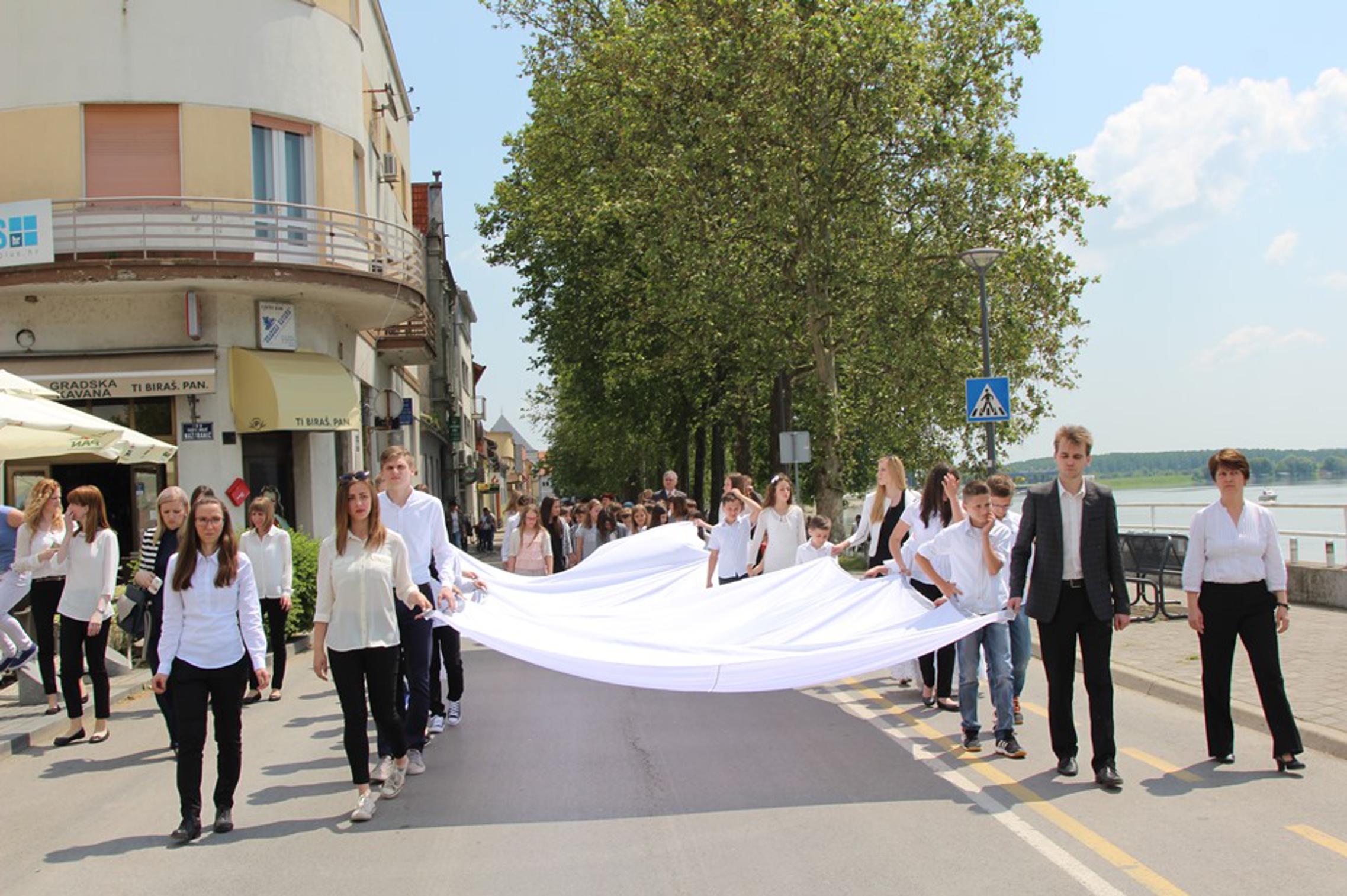 Duž slavonskobrodskog keja 402 upaljena bijela lampiona, ispred novog spomen obilježja, kojeg su otkrili braća, sestre i rođaci u ratu ubijene djece, 402 bijele ruže. Kao bolan podsjetnik na najveću i najneviniju žrtvu u Domovinskom ratu, kao podsjetnik na 402 ubojstva za koja još nitko nije odgovarao.