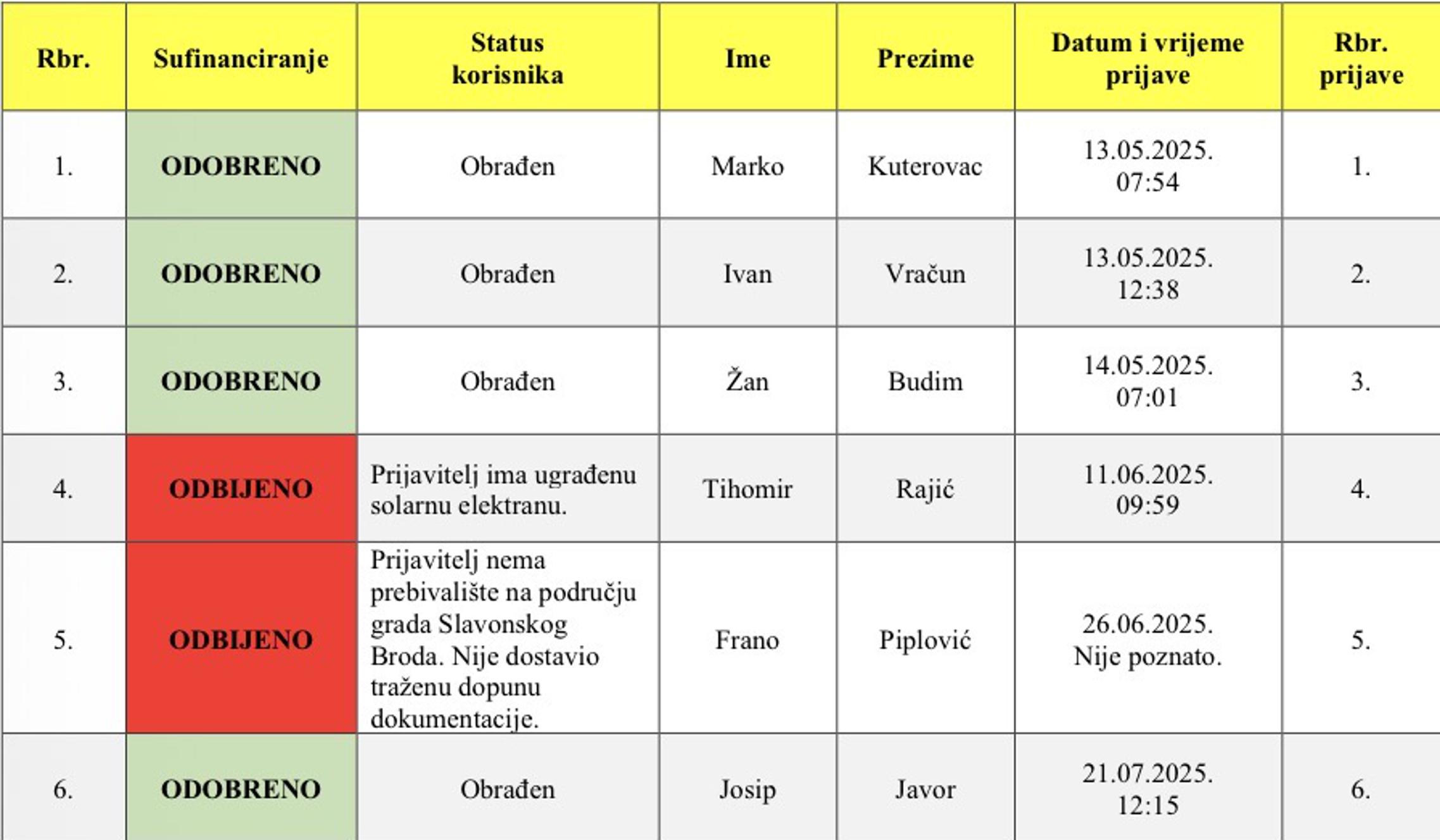 Za svaku obiteljsku kuću moguća je bila jedna prijava, a prijave je Grad odobravao po redoslijedu zaprimanja.