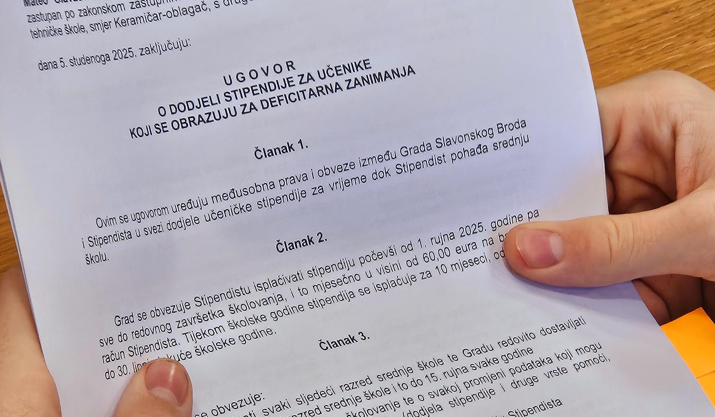 SLAVONSKI BROD - Grad Slavonski Brod godišnje stipendira ukupno 50-ero srednjoškolaca koji su odlučili upisati i školovati se za neka od deficitarnih zanimanja. Šesnaestero novih stipendista danas je, u pratnji roditelja, potpisalo svoje ugovore s gradonačelnikom Mirkom Dusparom.