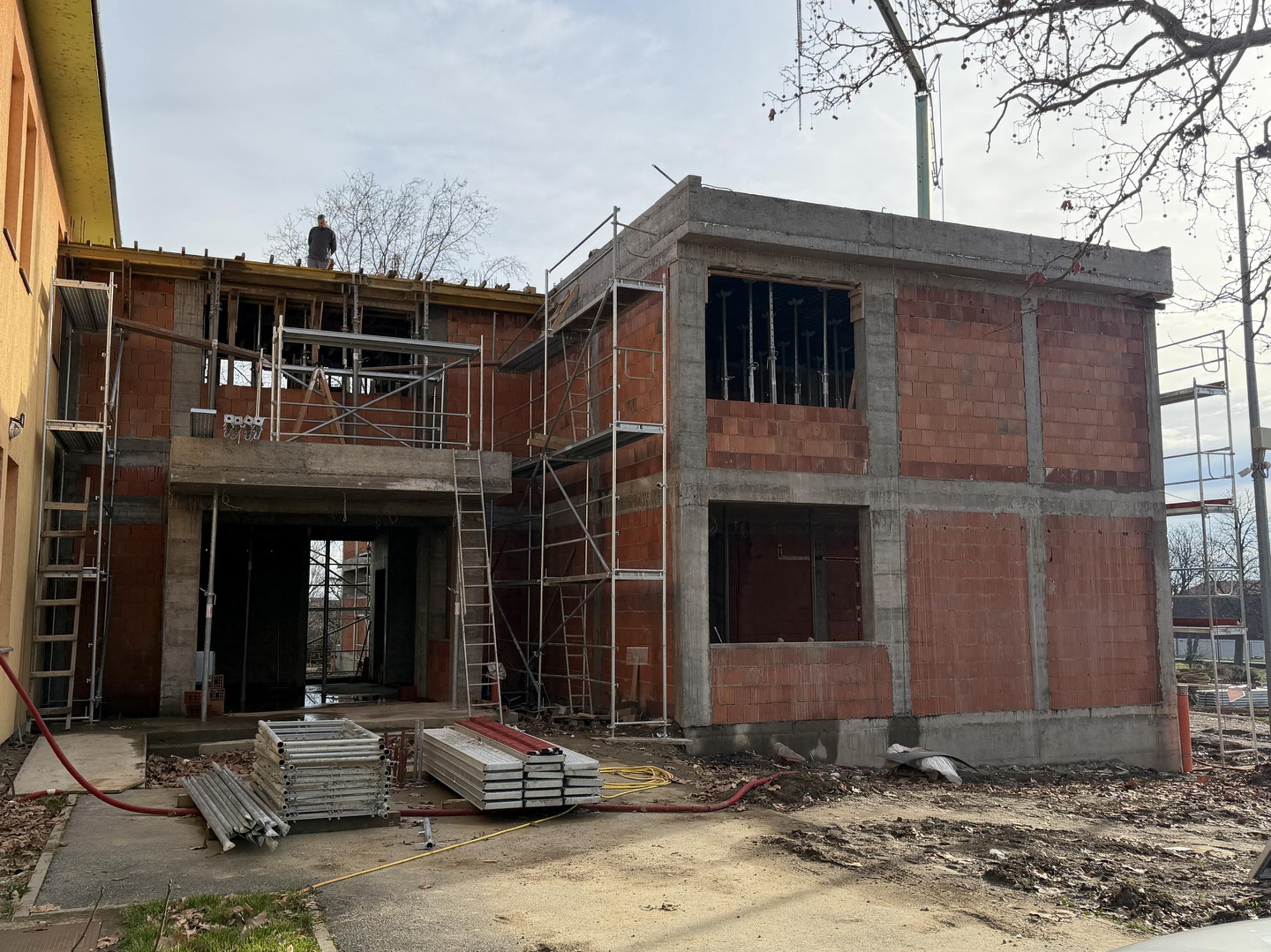 Prema najnovijem izvješću stručnog nadzora, u siječnju 2026. godine radovi su dodatno napredovali i ušli u novu fazu izgradnje. Na katu su izvedeni dijelovi armiranobetonskih vertikalnih serklaža, greda i stupova (oplata, armatura i beton), kao i oplata stropne ploče te armiranje greda i nadvoja. Izvedeni su i zidovi lifta (oplata, armatura i betoniranje), a nastavljeno je i zidanje zidova kata. Uz to, kontinuirano su se provodili elektro i strojarski radovi te radovi na vodovodu i odvodnji s unutarnjim razvodom.