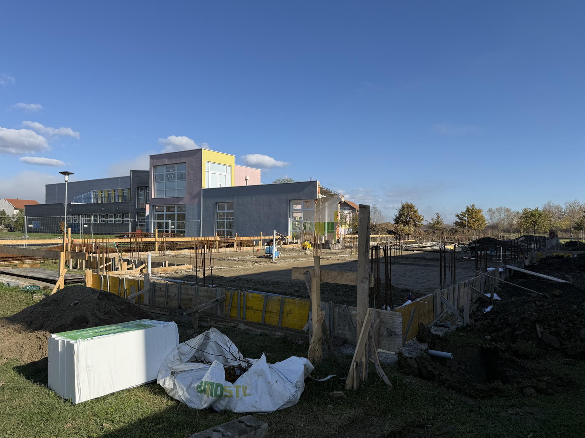 SLAVONSKI BROD - Na gradilištu Područne škole Kolonija, koja djeluje u sastavu Osnovne škole „Đuro Pilar“ u Slavonskom Brodu, napreduju radovi. Trenutno je u tijeku izrada nasipa unutar nadtemelja te temeljni razvod kanalizacije, čime se stvaraju preduvjeti za sljedeće faze građevinskih i instalacijskih radova.