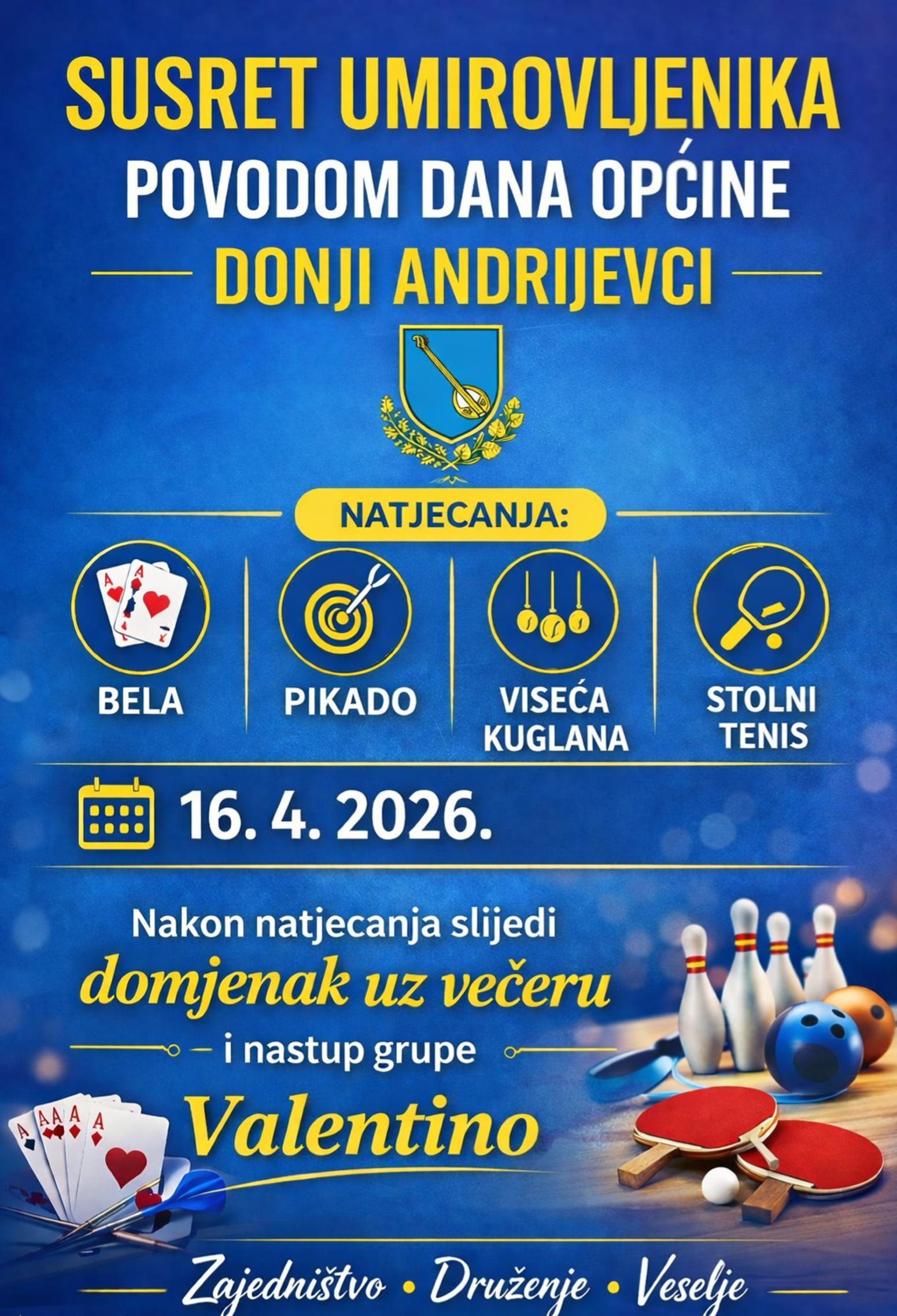 DONJI ANDRIJEVCI - Susretom umirovljenika odnosno sportskim natjecanjima, domjenkom uz večeru i glazbu, danas je počela proslava Dana Općine Donji Andrijevci.