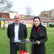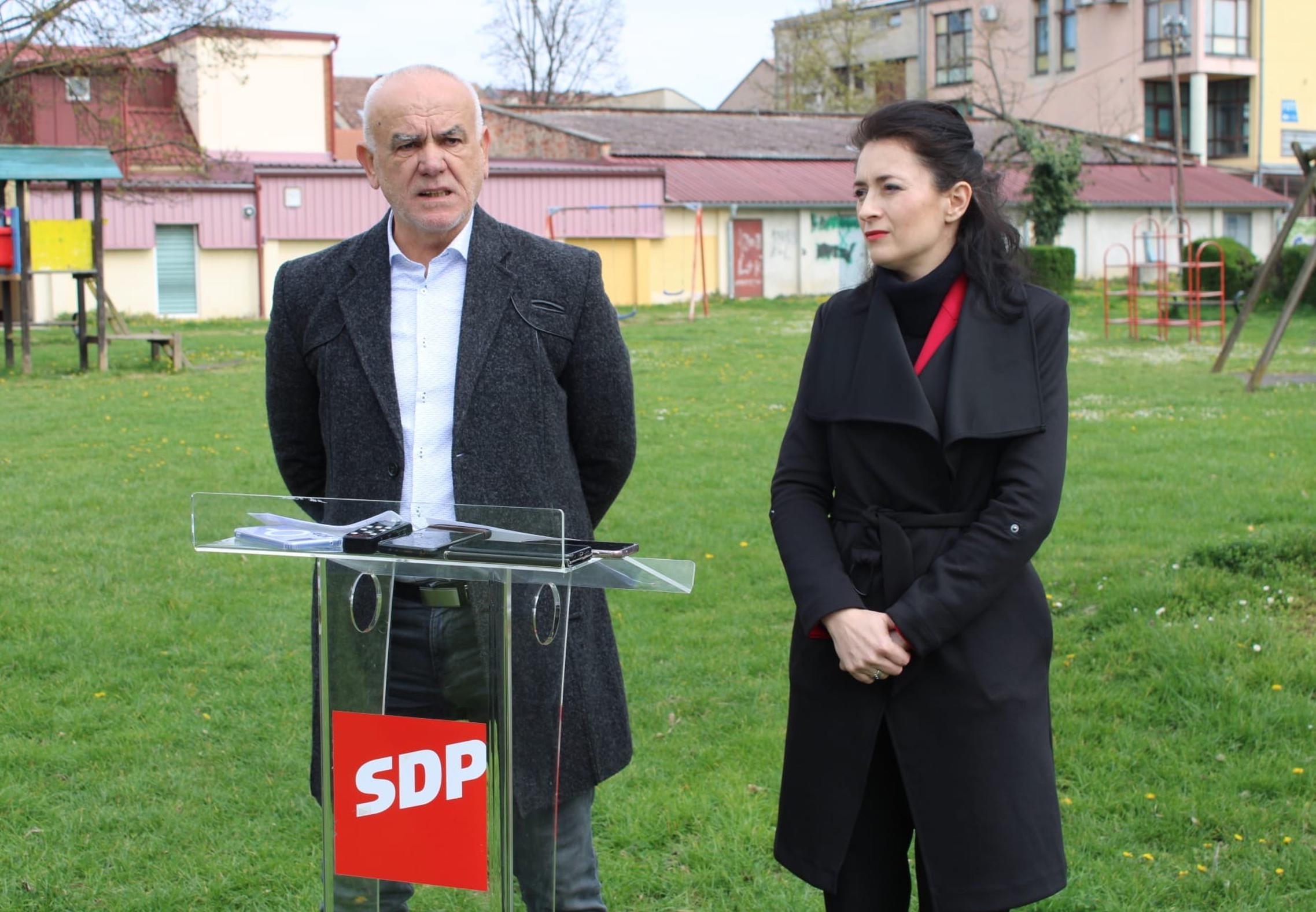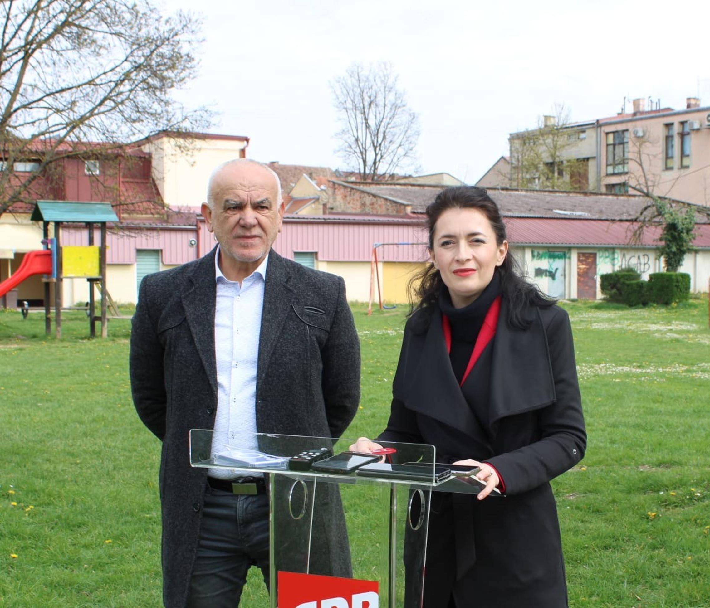 NOVA GRADIŠKA - Na lokaciji dječjeg igrališta na Cvjetnom trgu u strogom centru Grada Nova Gradiška medijsku konferenciju održali su saborska zastupnica i predsjednica Brodsko-posavske Županijske organizacije SDP-a Ivana Ribarić Majanović te Boris Šalinski, županijski vijećnik.
