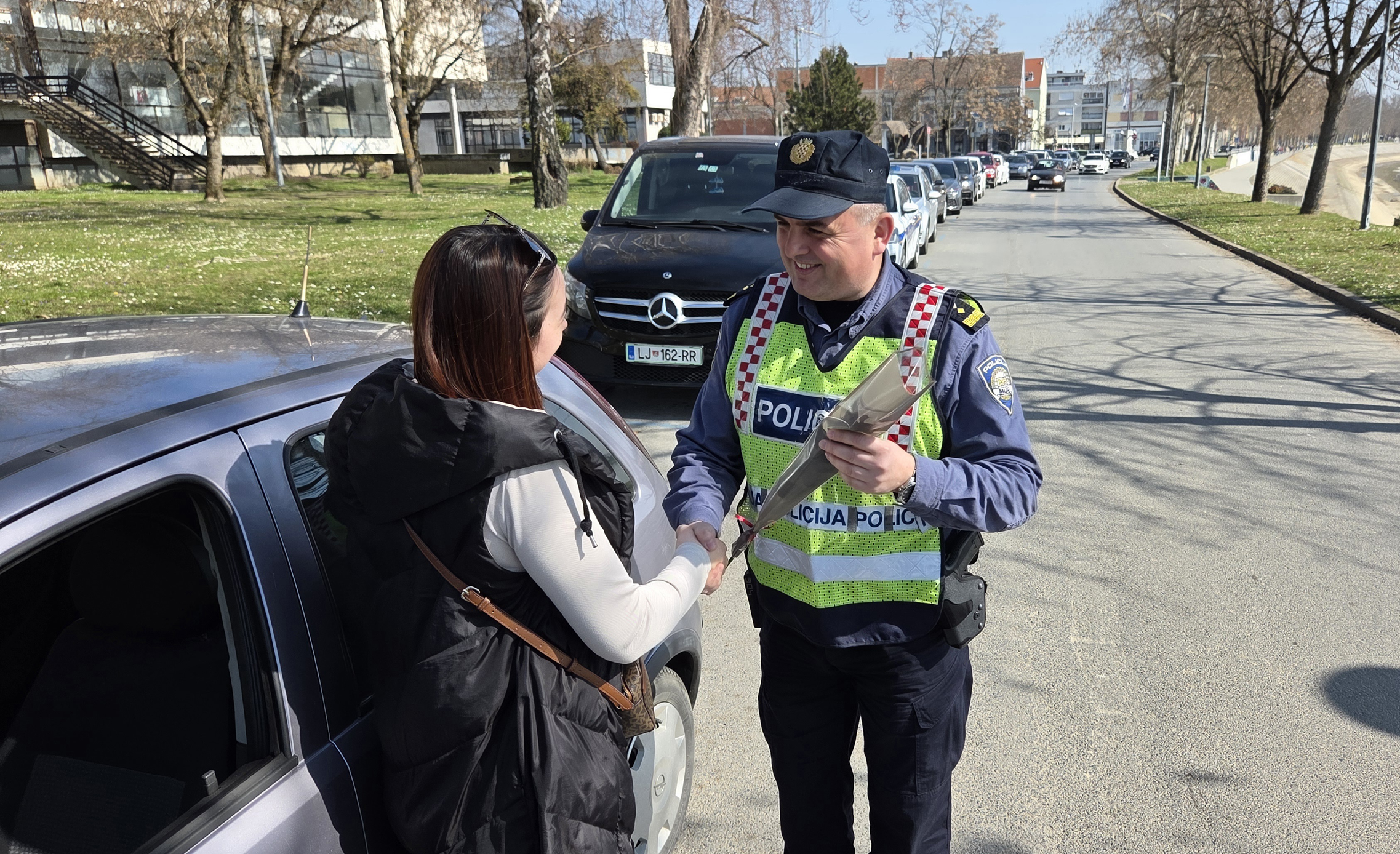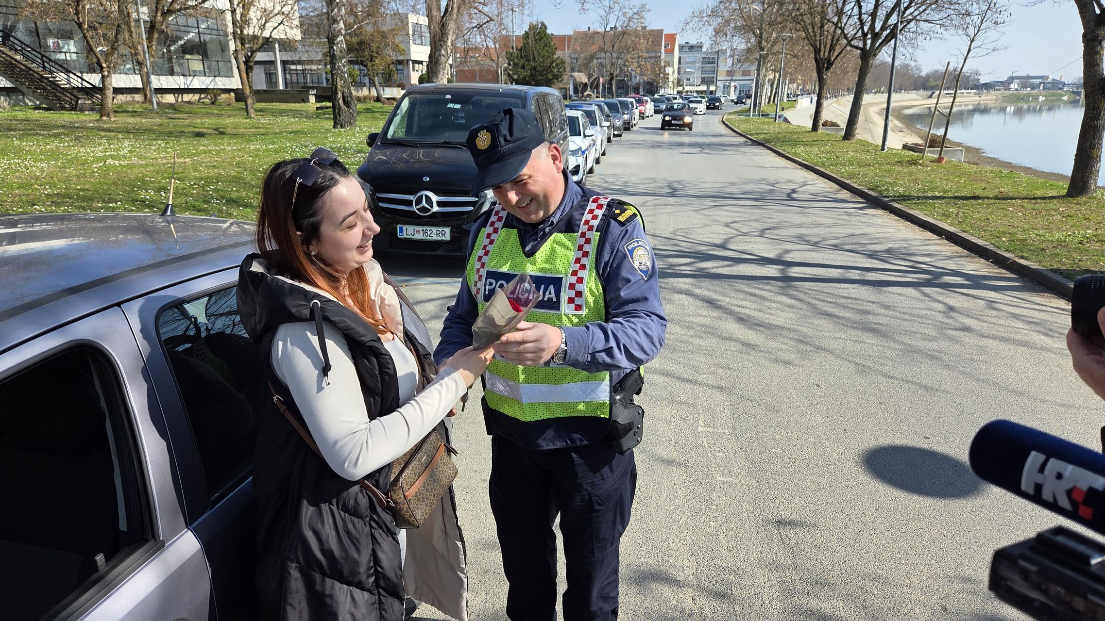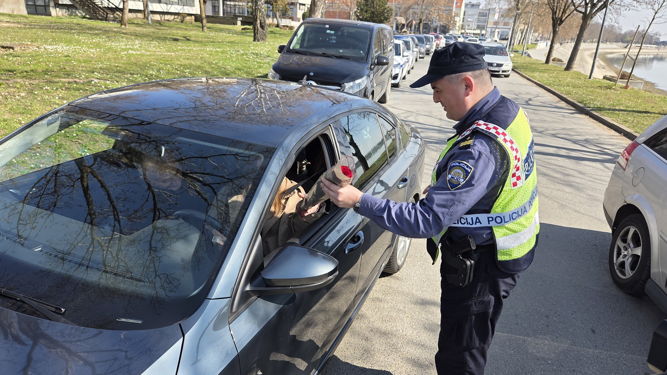 SLAVONSKI BROD - Na Šetalištu braće Radić policijski su službenici oko podneva napravili pravu malu „sačekušu“ za vozačice u Slavonskom Brodu. Povodom Dana žena zaustavljali su samo pripadnice ljepšeg spola i darivali ih ružama.