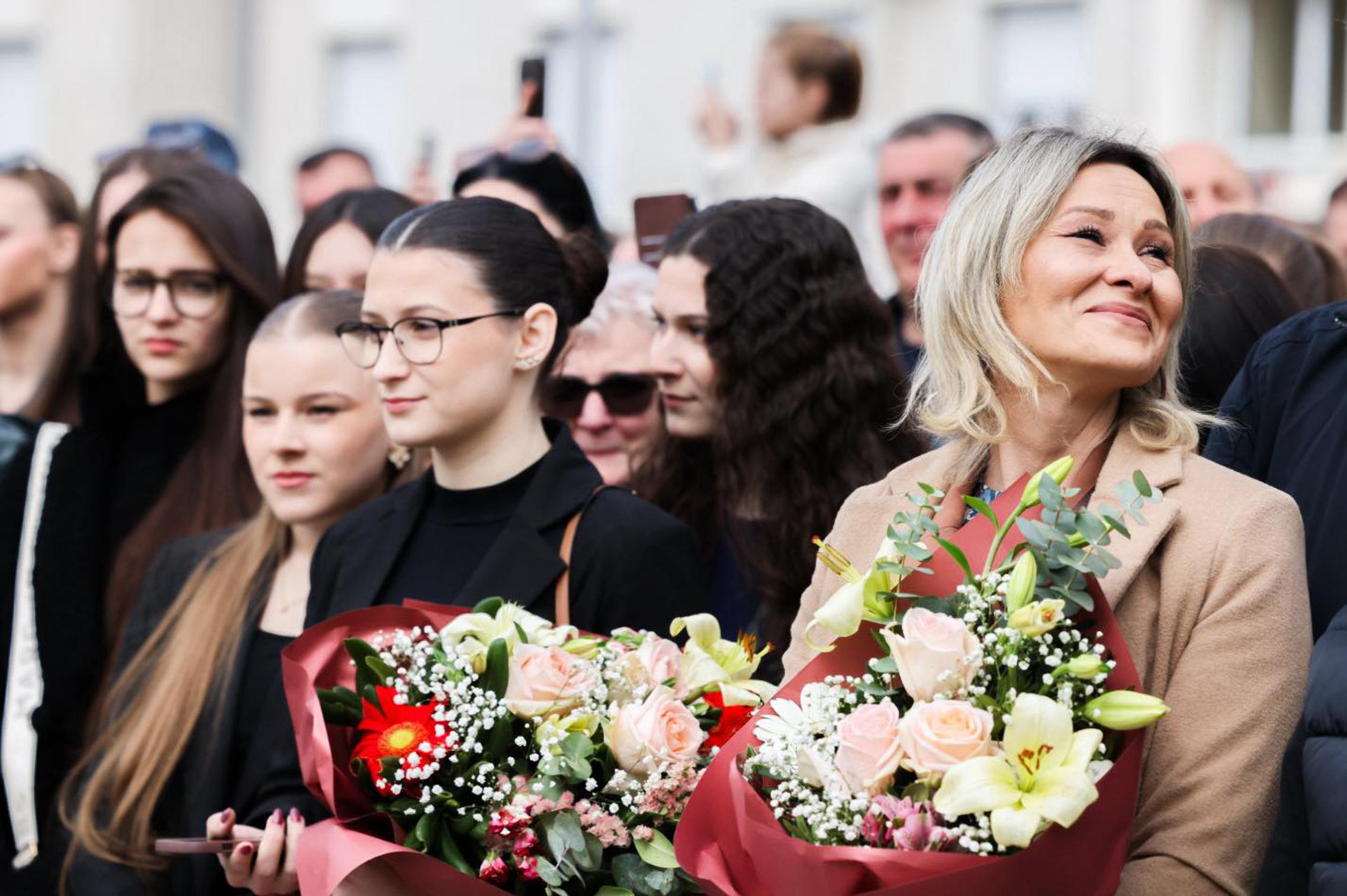 Ipak, požeška je medijski bila najviše praćena jer je među roditeljima koji su došli čestitati svojoj djeci bio i glazbenik Marko Perković Thompson, čija je najstarija kći Diva Marija (18) među 82 žene koje su danas prisegnule.