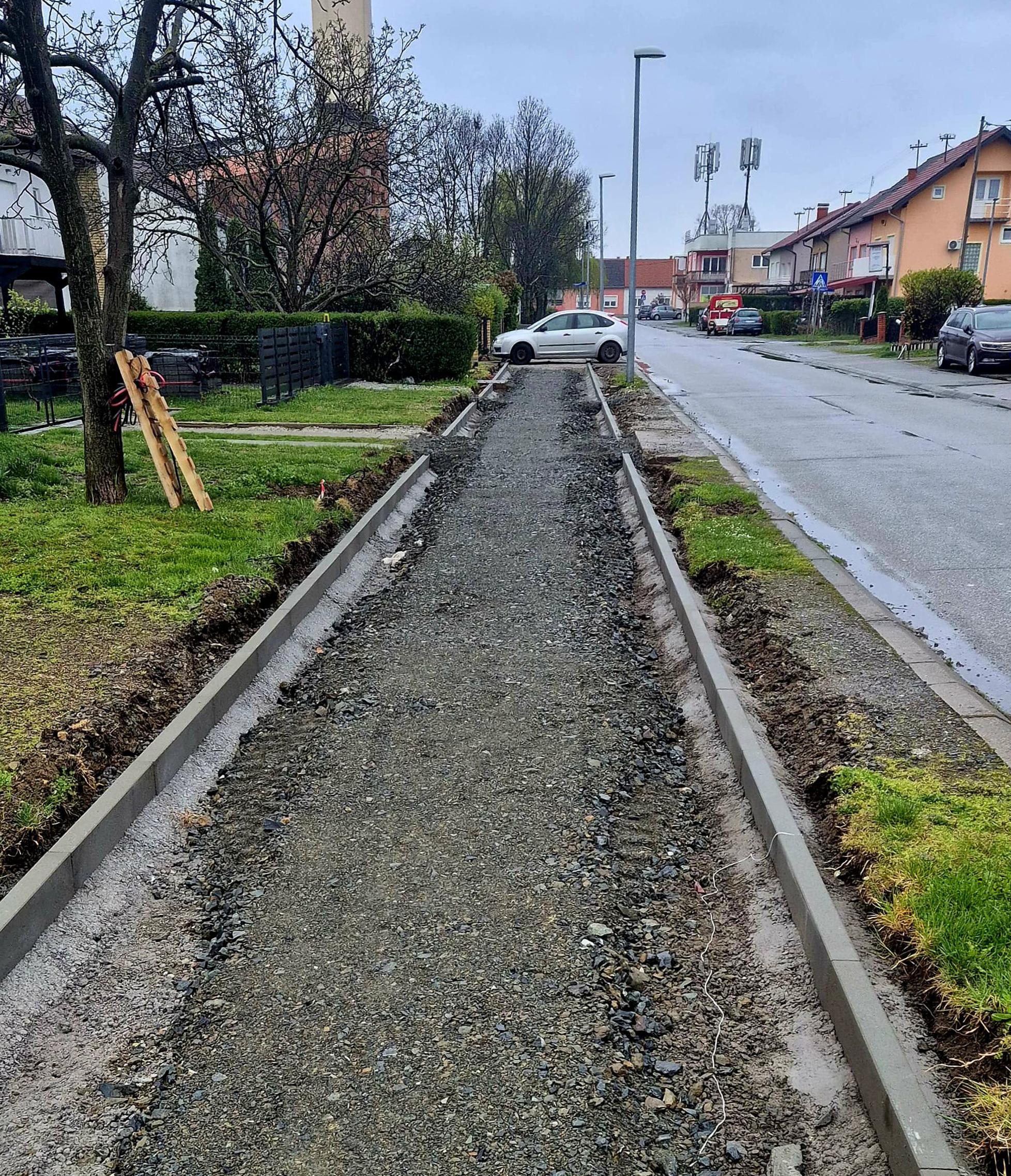 Naime, dužinom od 40-ak metara, rubnjaci uz novu stazu postavljeni su prenisko u odnosu na kolne prilaze pa radovi ne mogu biti nastavljeni ni asfaltiranje obavljeno prije no što se sve odradi nanovo. A to, nažalost, znači uklanjanje postavljenih 'ivičnjaka', nasipanje i obrada podloge te ponovno postavljanje kako bi bili na odgovarajućoj visini u odnosu sve što se nalazi oko njih.