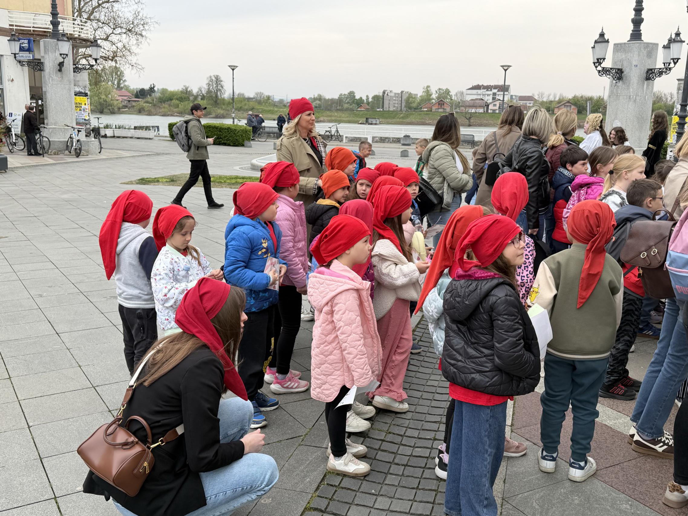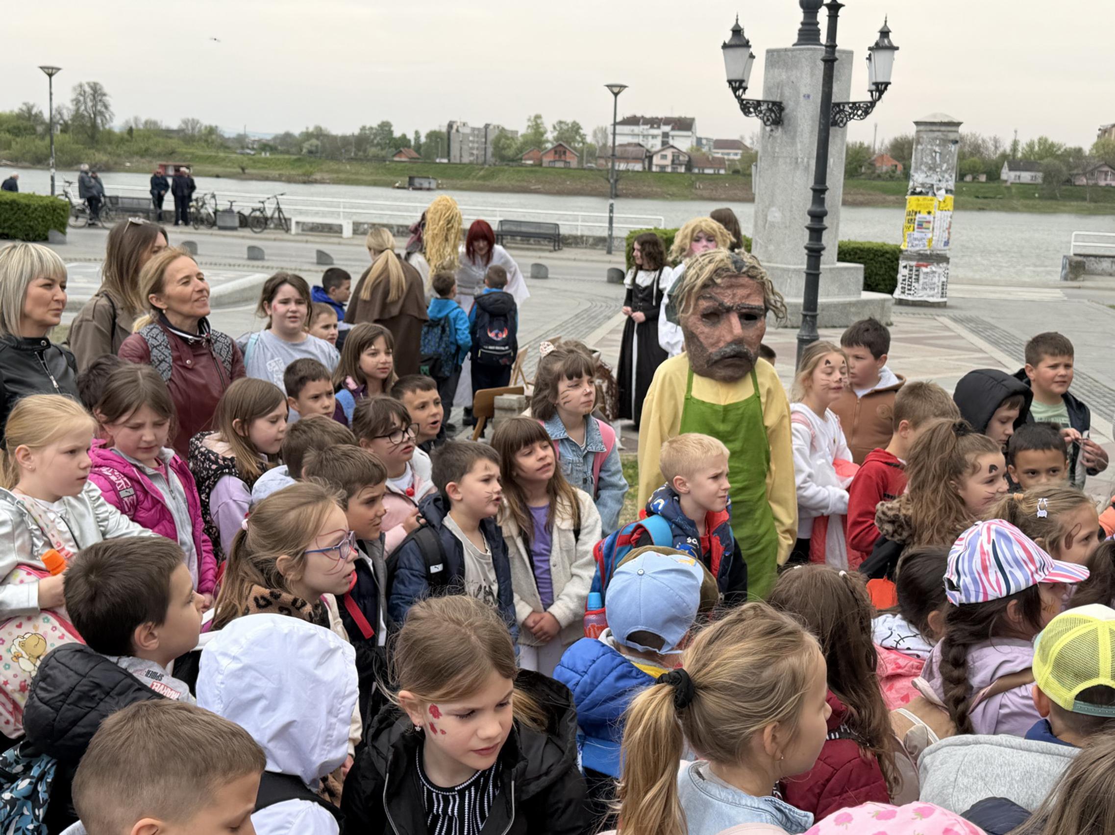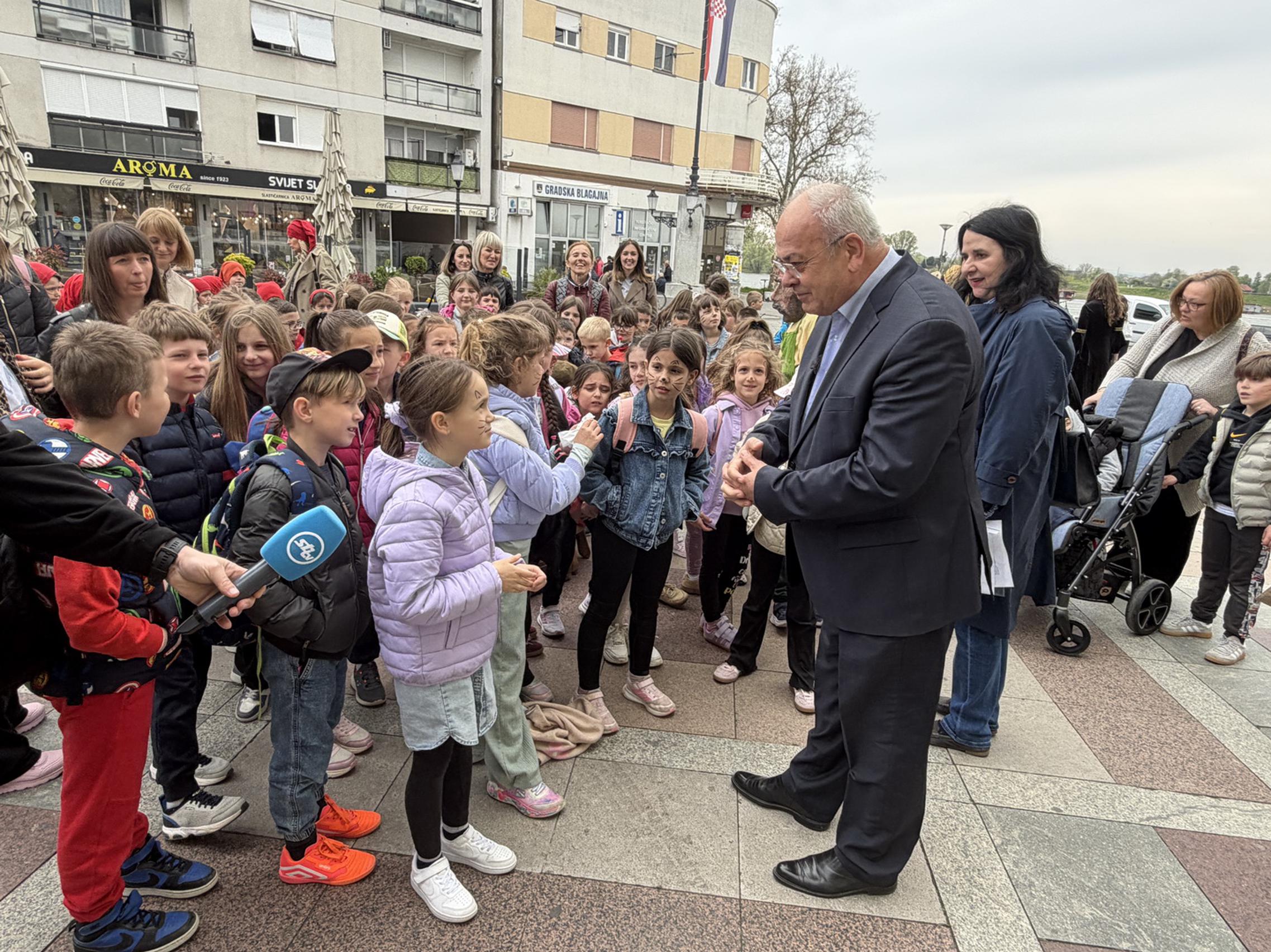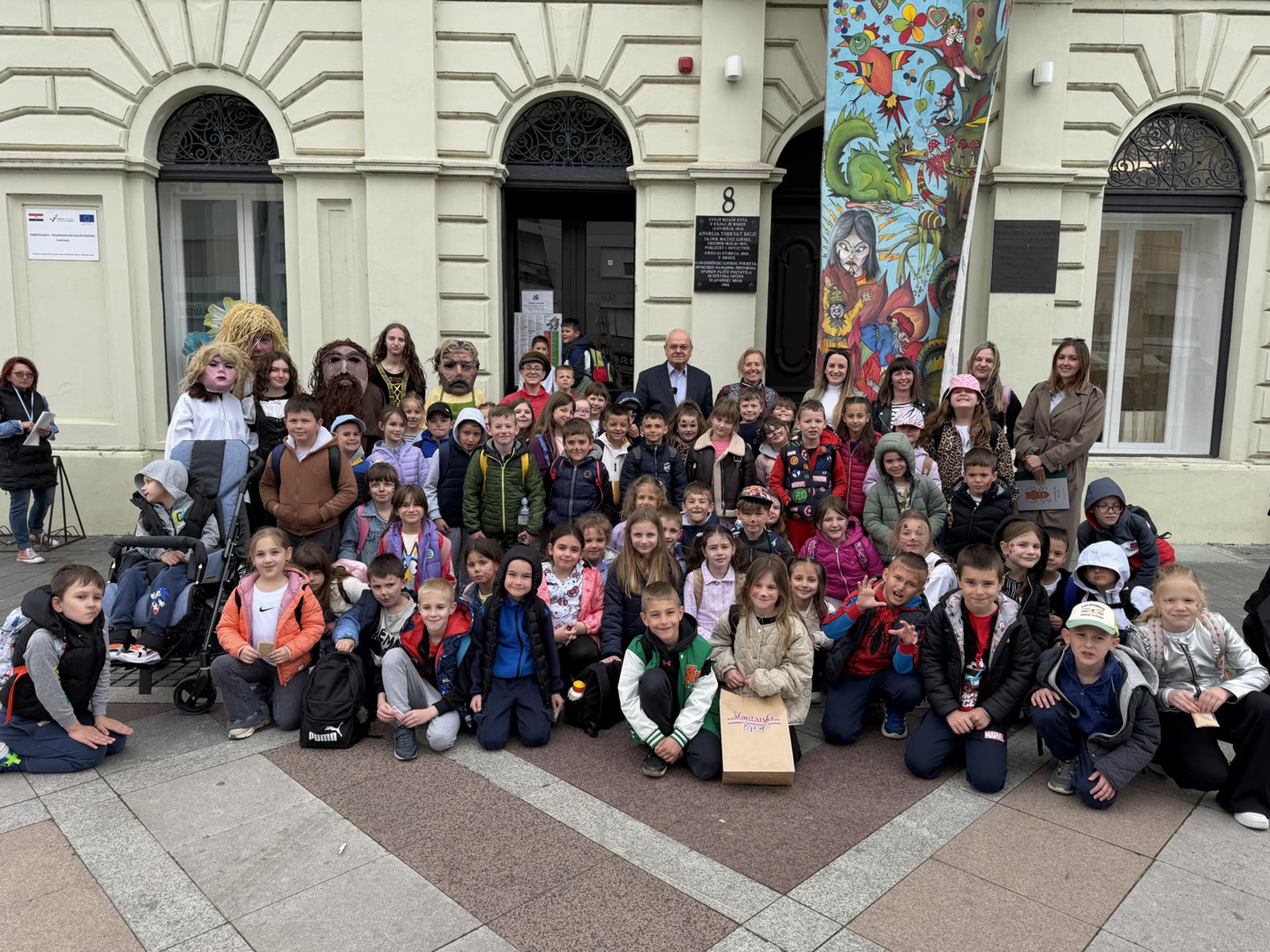 SLAVONSKI BROD - U sklopu jučer otvorene manifestacije „U svijetu bajki Ivane Brlić-Mažuranić", gradonačelnik Mirko Duspara danas je ispred Kuće Brlić na Trgu Ivane Brlić-Mažuranić dočekao učenike Osnovne škole Julija Kempfa iz Požege koji su Slavonski Brod posjetili u sklopu jednodnevnog školskog izleta.