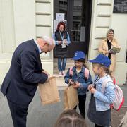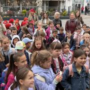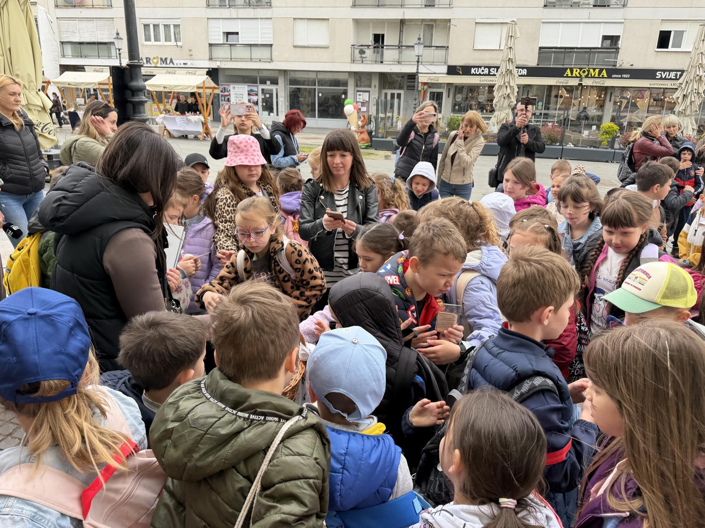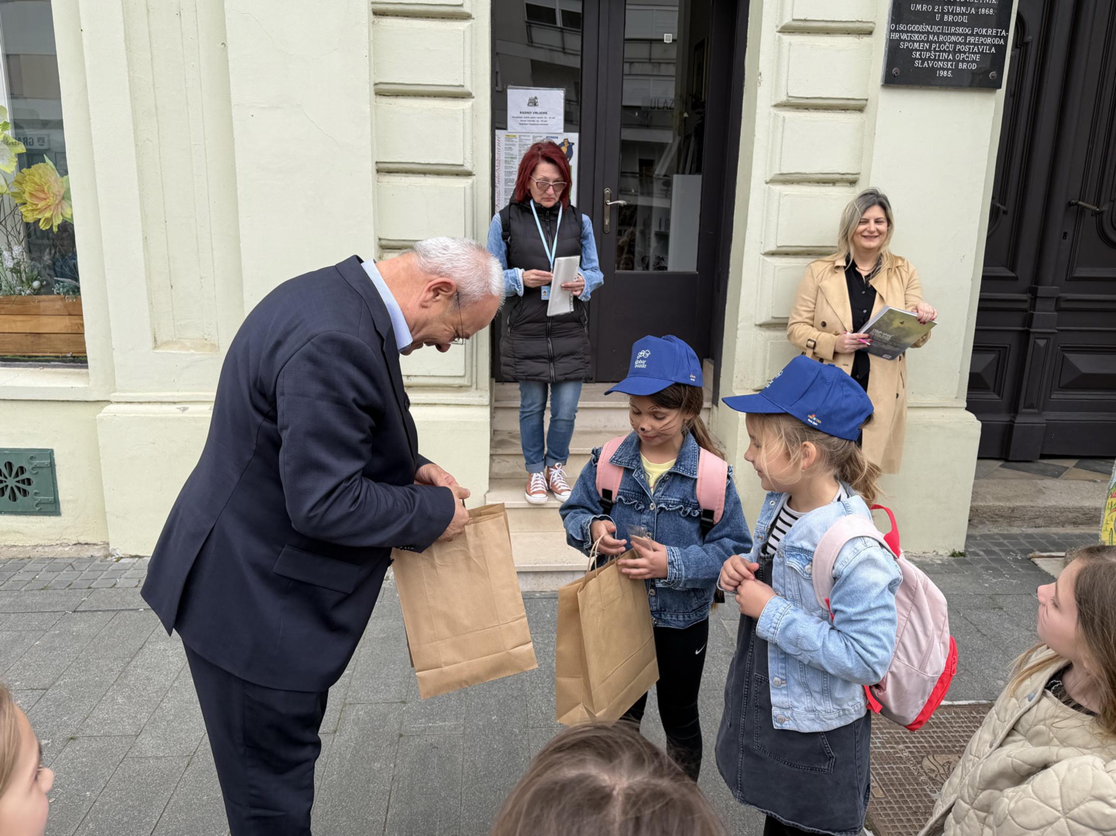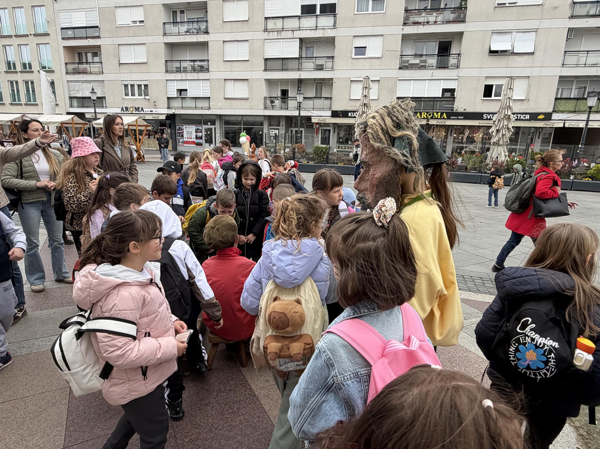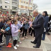 SLAVONSKI BROD - U sklopu jučer otvorene manifestacije „U svijetu bajki Ivane Brlić-Mažuranić", gradonačelnik Mirko Duspara danas je ispred Kuće Brlić na Trgu Ivane Brlić-Mažuranić dočekao učenike Osnovne škole Julija Kempfa iz Požege koji su Slavonski Brod posjetili u sklopu jednodnevnog školskog izleta.