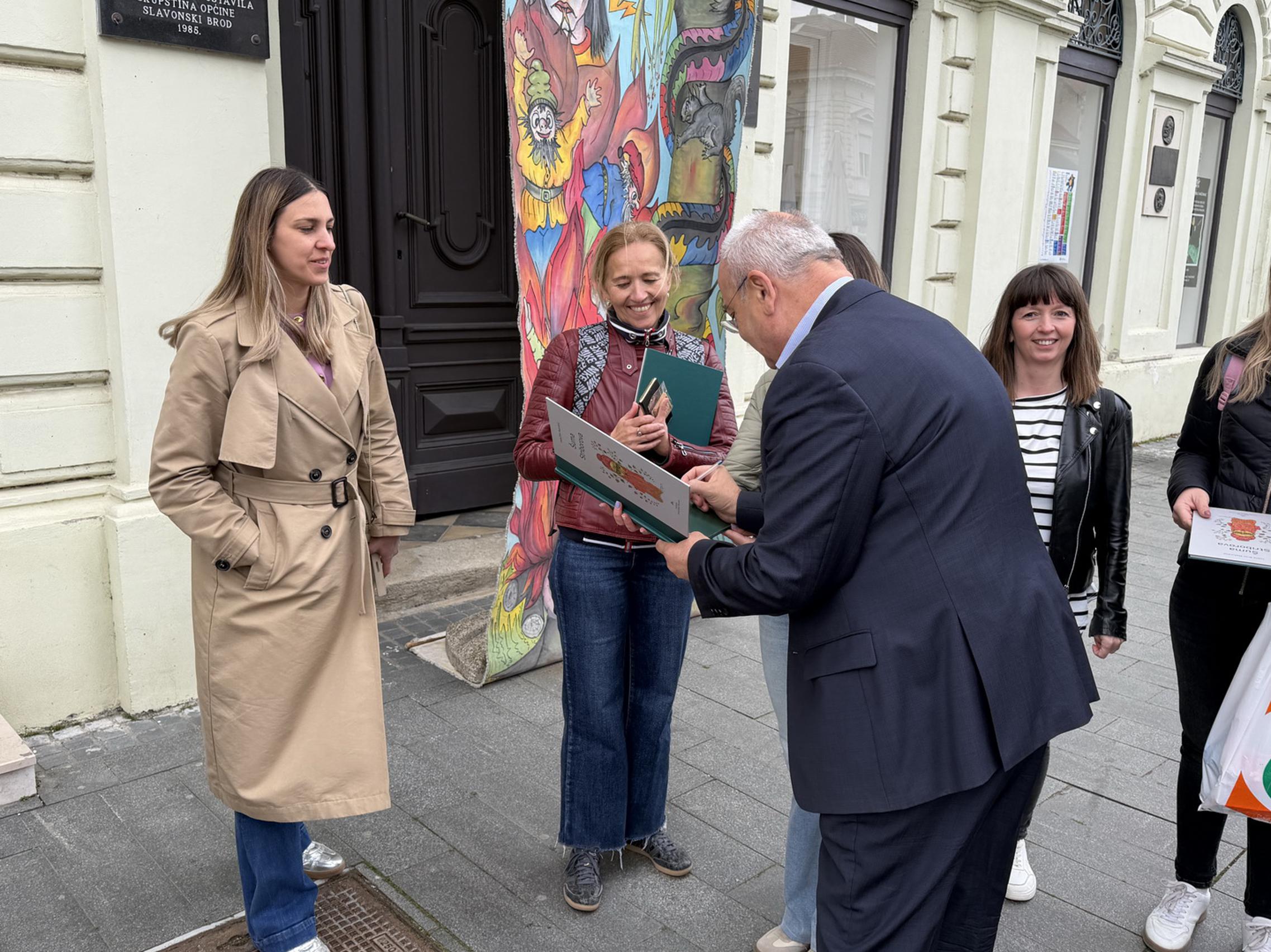 Gradonačelnik je izrazio zadovoljstvo što su požeški učenici za odredište svog izleta odabrali upravo Slavonski Brod te ih je ukratko upoznao s gradom. Podsjetio ih je da je Slavonski Brod sedmi grad po veličini u Hrvatskoj i drugi u Slavoniji, da prema posljednjem popisu broji 59.141 stanovnika te da se prostire na površini od 54,45 četvornih kilometara duž obale Save, uz samu granicu s Bosnom i Hercegovinom. Posebno je istaknuo dvije kulturne ličnosti kojima je grad najprepoznatljiviji - Ivanu Brlić-Mažuranić, čiju su Kuću učenici toga dana posjetili te Dragutina Tadijanovića, poznatog hrvatskog pjesnika rođenog u okolici Slavonskog Broda koji je u gradu pohađao dio osnovnoškolskog obrazovanja.