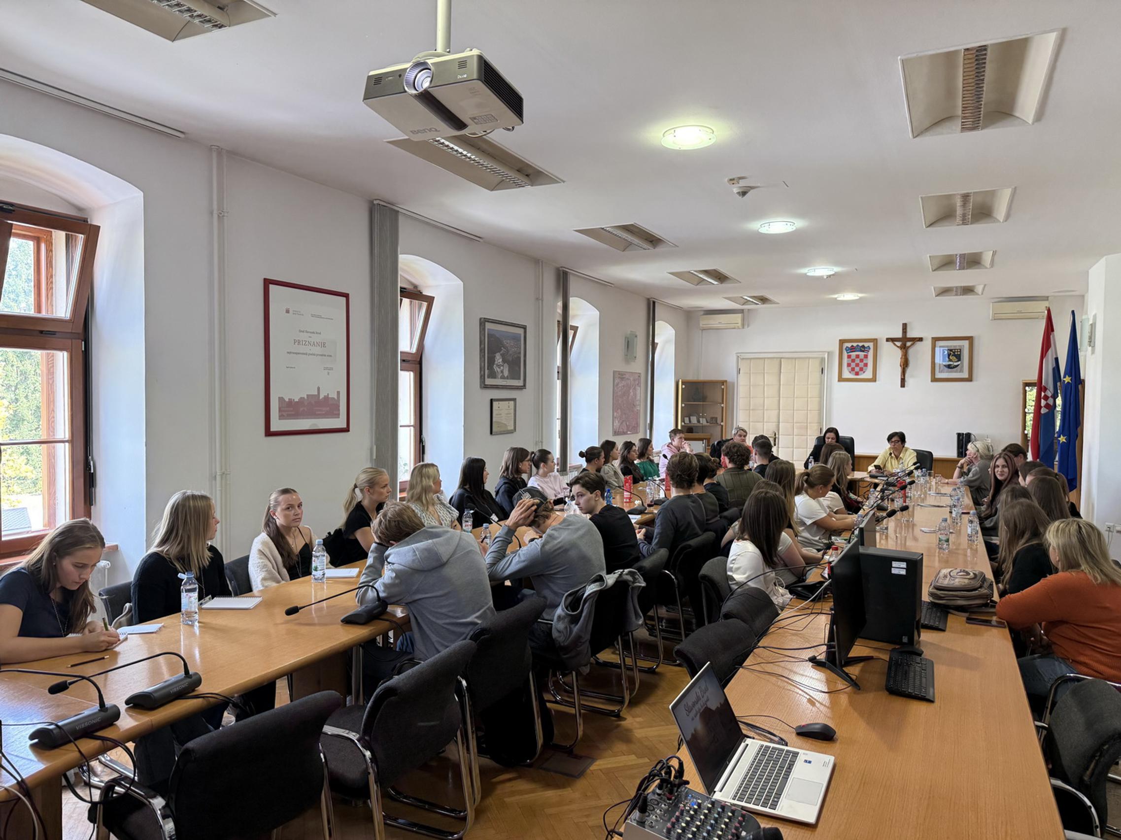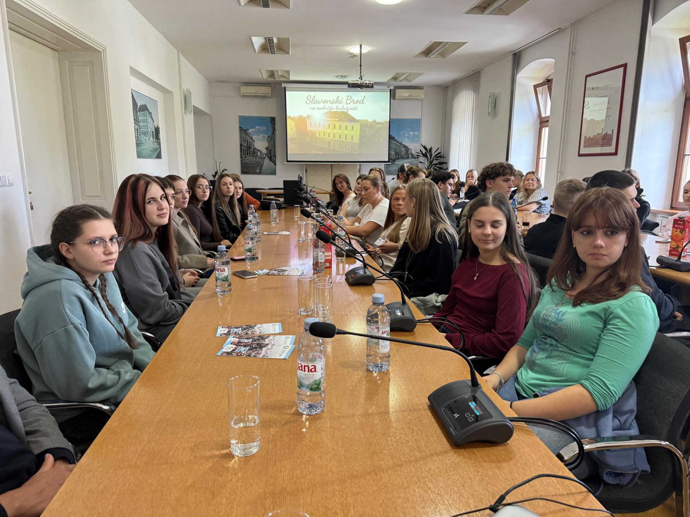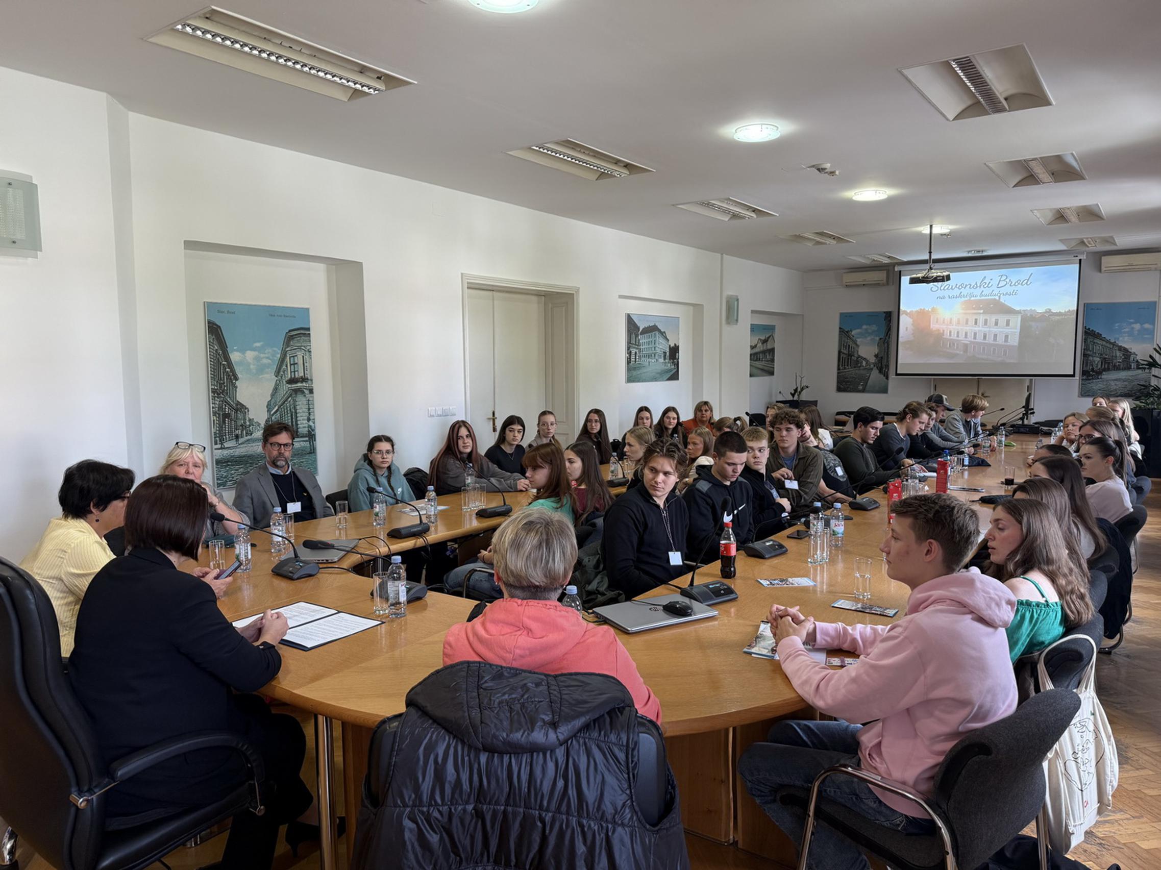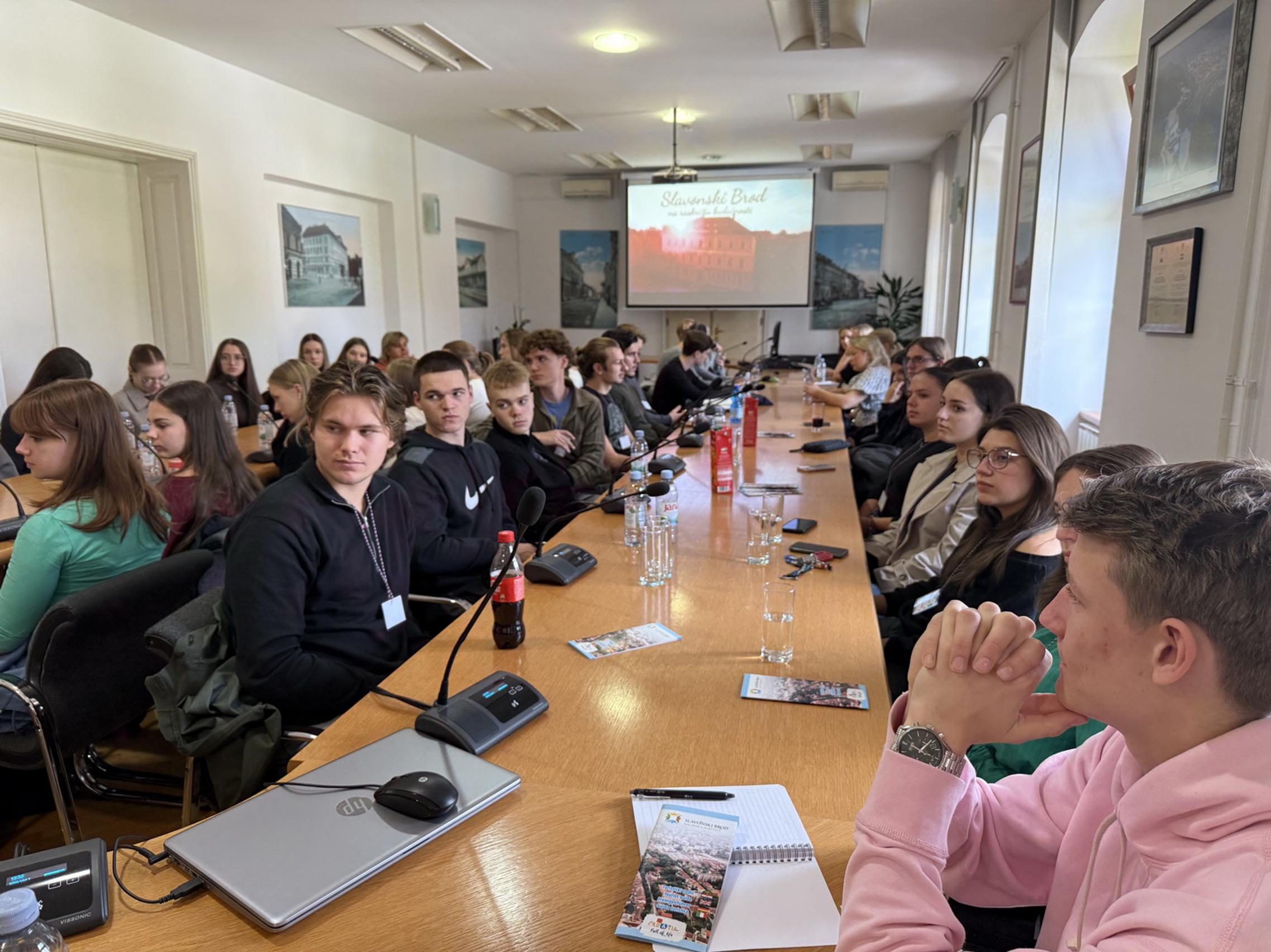 U sklopu prijema prikazan je i kratki promotivni video o Slavonskom Brodu, nakon čega su učenici Erasmus+ projekta imali priliku postaviti pitanja te provesti intervju sa zamjenicom gradonačelnika za potrebe svoga istraživanja.