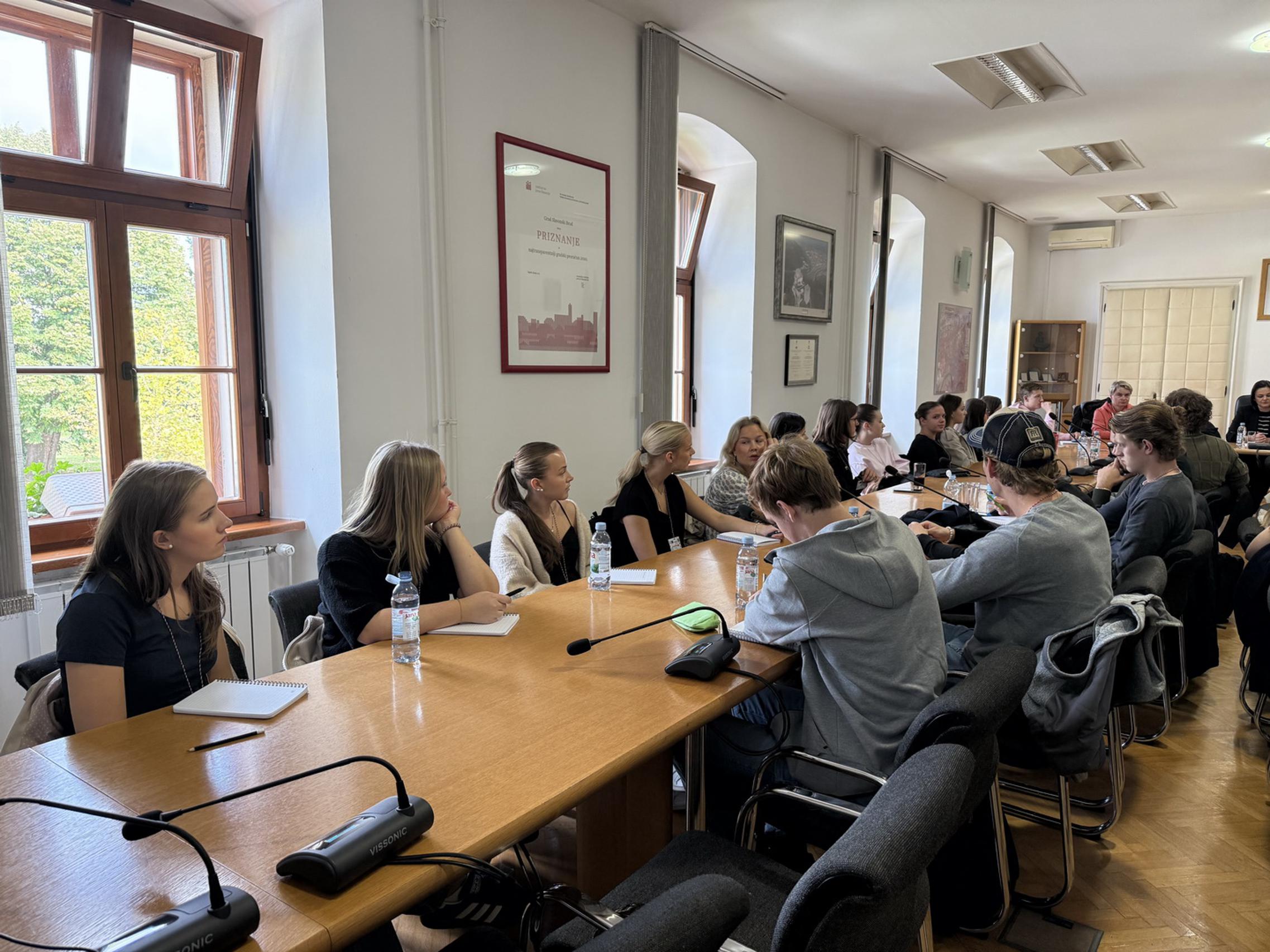 SLAVONSKI BROD - U Velikoj vijećnici Grada Slavonskog Broda održan je prijem za učenike iz Švedske koji u Slavonskom Brodu borave putem Erasmus+ programa, zajedno s učenicima Gimnazije Matija Mesić. U ime Grada Slavonskog Broda goste je primila zamjenica gradonačelnika Marina Martić Puača.