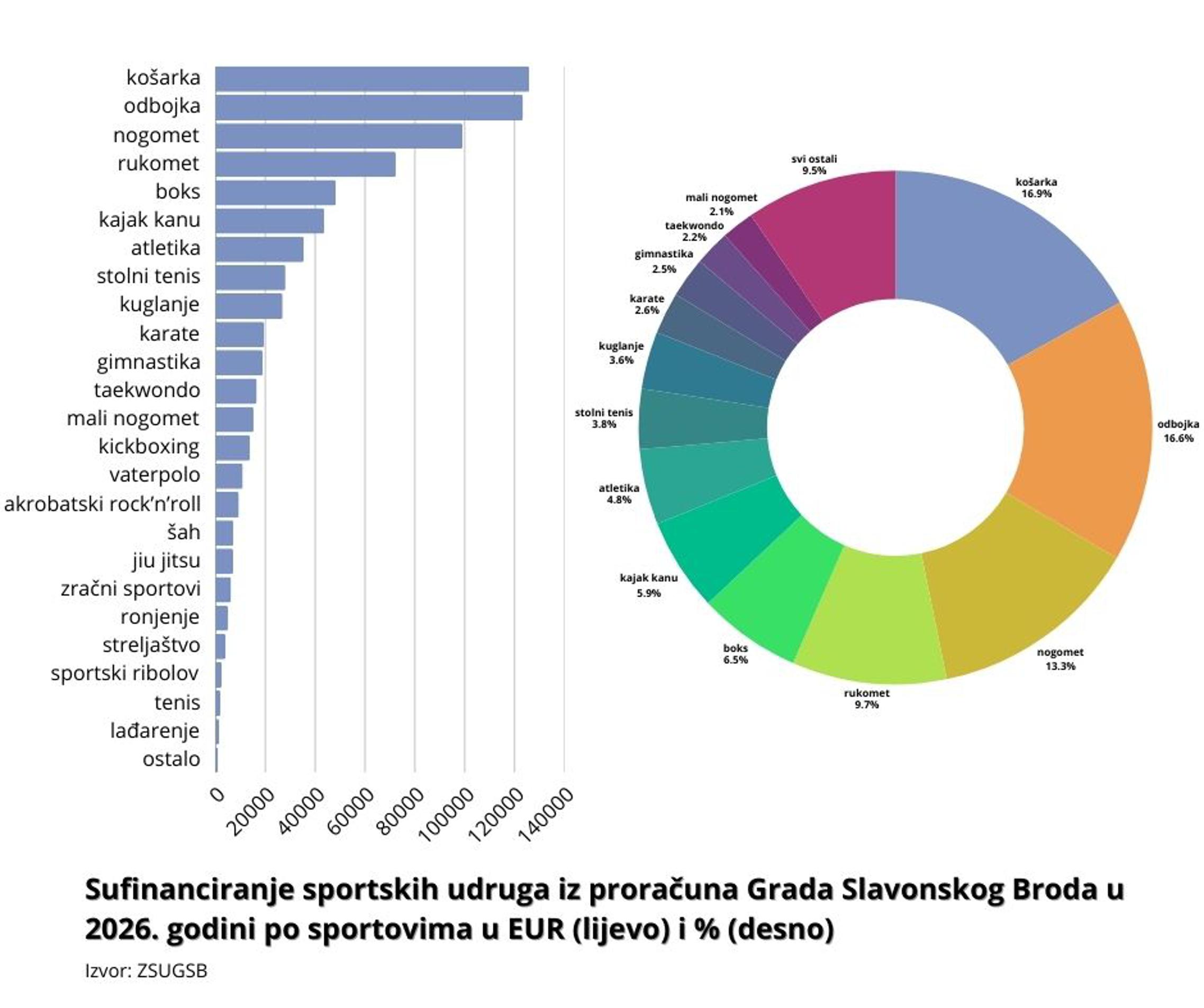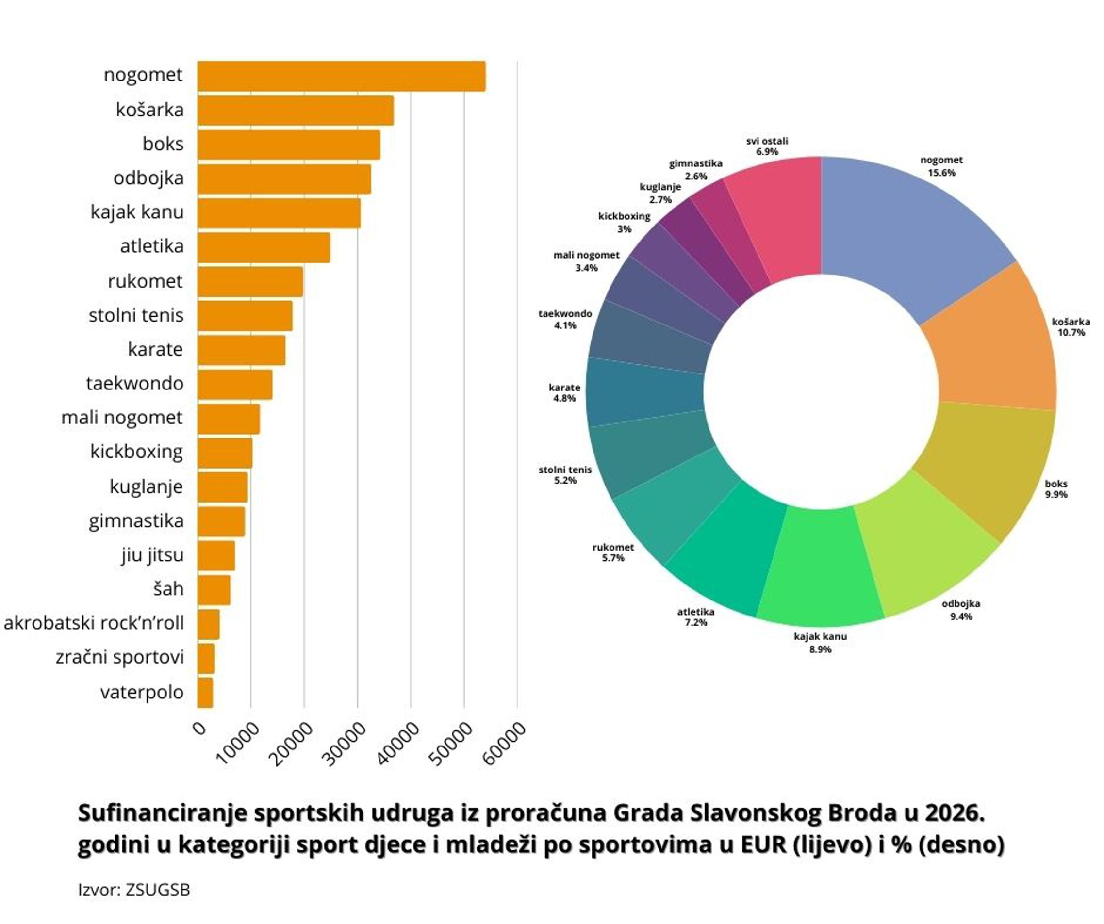 Gradskim proračunom za 2026. za sportske udruge na području Grada Slavonskog Broda predviđeno je 998.662 eura, koliko je i raspodijeljeno Odlukom Upravnog odbora Zajednice sportskih udruga Grada Slavonskog Broda od 12. veljače 2026. nakon provedenog Javnog poziva za sufinanciranje programa javnih potreba u sportu Grada Slavonskog Broda u 2026. godini.