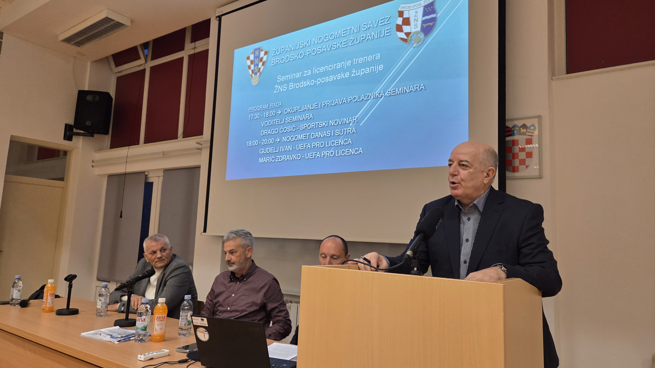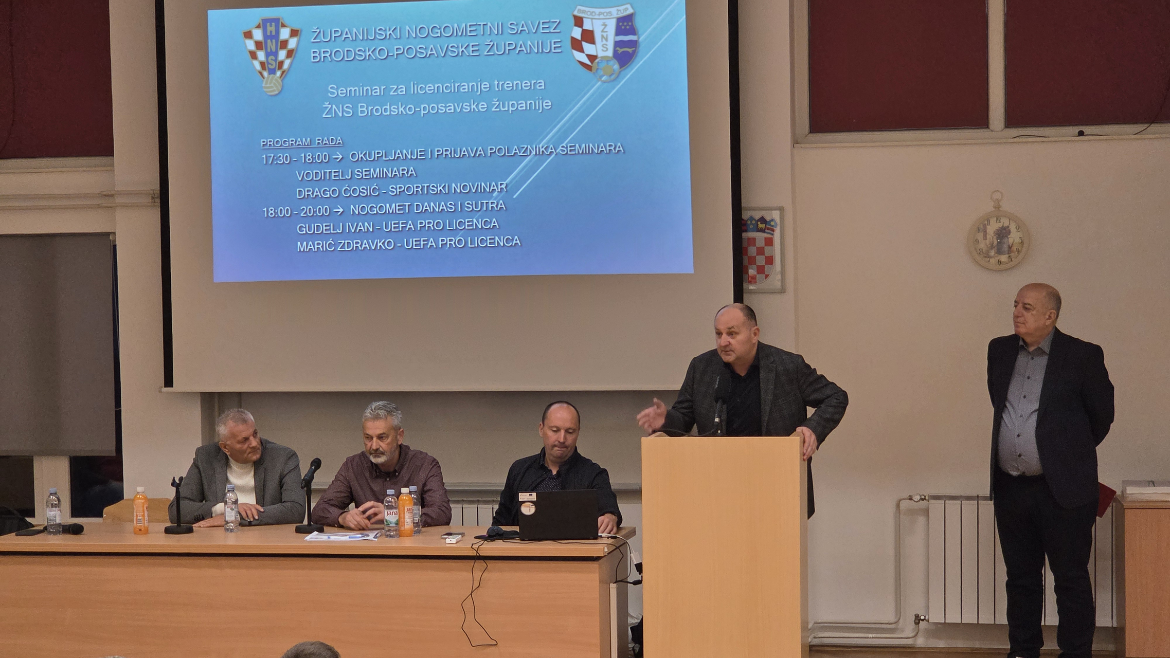 - Odaziv trenera u Slavonskom Brodu je izvrstan. Predložio sam da to ne bude klasični seminar, nego nešto više nalik panelu i razgovoru o nogometu danas i sutra. Ovaj seminar svim trenerima nosi 5 bodova za sve UEFA licence koje posjeduju. Kako bi vodili momčad u natjecanju, oni su obvezni skupiti određeni broj bodova. Predložio sam i druga eminentna imena za ovaj seminar kako bi treneri čuli različita iskustva. Ima tu mladih trenera, ali i iskusnijih... što pokazuje kako je riječ o području u kojemu se uči cijeli život. U onom trenutku kad misliš da sve znaš, to je kraj, Treba učiti cijeli život, razmjenjivati mišljenja i slušati tuđa iskustva. - kazao je gost i predavač Ivan Gudelj, instruktor Nogometnog središta Split.