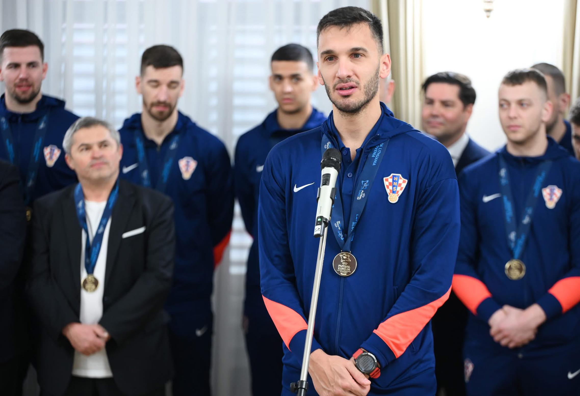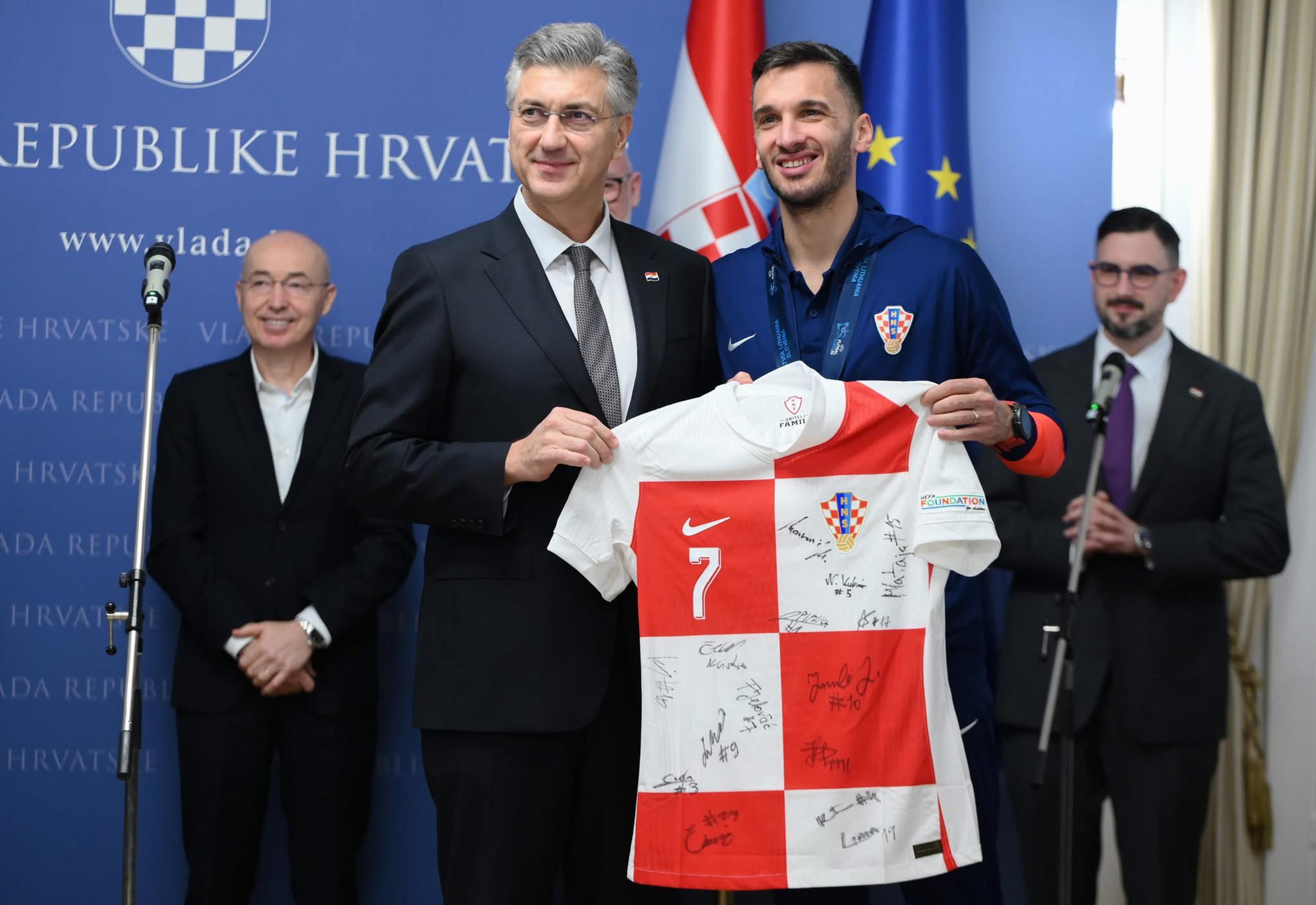 ZAGREB - U Banskim dvorima predsjednik Vlade Republike Hrvatske Andrej Plenković ugostio je brončanu futsalsku reprezentaciju, koja je ostvarila povijesni uspjeh na Europskom prvenstvu održanom u Sloveniji, Litvi i Latviji. Dramatična subotnja utakmica protiv Francuske odlučena je nakon izvođenja šesteraca. Svih pet izvođača bilo je uspješno na obje strane, a potom je uslijedilo raspucavanje „bez greške“, u kojem su Francuzi prvi promašili - te je Hrvatska osvojila veliku broncu ukupnim rezultatom 11-10 (regularni dio 5-5) . Među strijelcima je bio i Antonio Sekulić iz Oriovca.