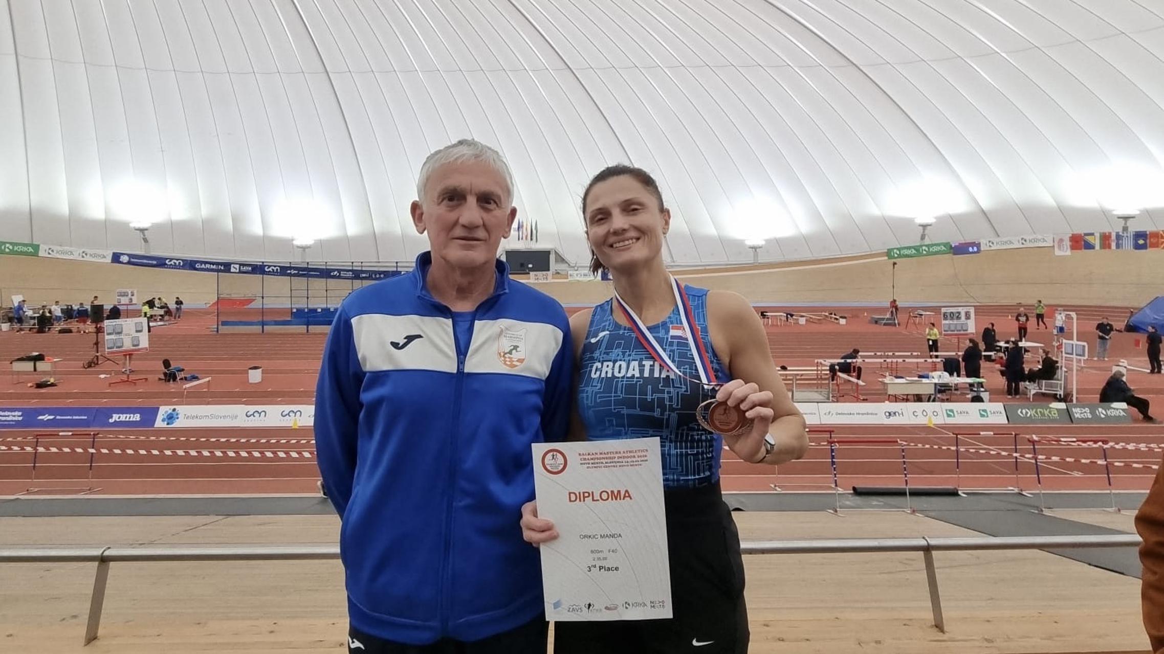 Dan poslije, u nedjelju održano je Prvenstvo Balkana u dvorani za veterane. Ondje je posebno iznenadila Manda Orkić. Naime, Manda je u utrci na 800 metara u kategoriji W40 osvojila izvrsno 3. mjesto s vremenom 2:35,05.