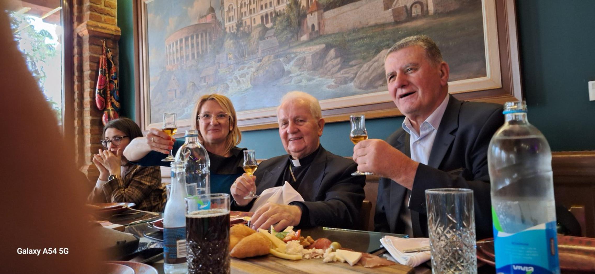 Nakon Misnog slavlja u kapelici crkve „Marije Zvijezde“ drugi dio slavlja nastavljen je u restoranu „Integra“ u središtu Banje Luke gdje su gostoljubivi domaćini pripremili kvalitetnu okrepu. Opća je konstatacija da je subotnji dan, 7. veljače, bio u znaku pjesme. Pjevalo se od Slavonskog Broda do Banje Luke i natrag uz pratnju „Zvone benda“. Pjevalo se na samome svečanom ručku, nakon rezanja slavljeničke torte i dodjele povelje počasnog člana Matice hrvatskih umirovljenika grada Slavonskog Broda biskupu Franji Komarici. A tko pjeva taj zlo ne misli, zar ne? Djelić atmosfere donosimo u galeriji fotografija.