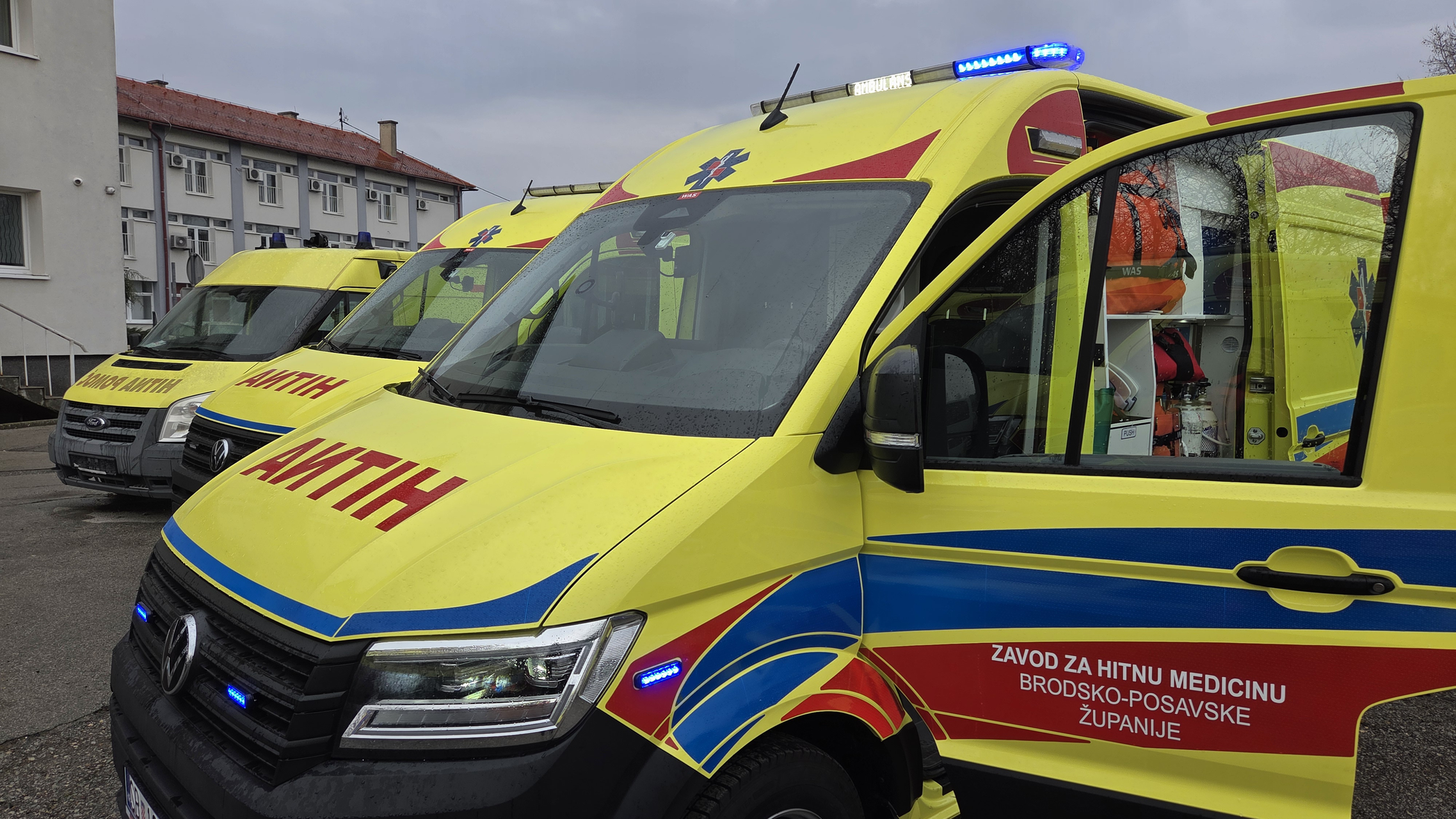 SLAVONSKI BROD - Četirima novim vozilima obogaćen je vozni park Zavoda za hitnu medicinu Brodsko-posavske županije. Ravnatelju Branku Godiću na tomu su danas čestitali brodsko-posavski župan Danijel Marušić i predsjednik Županijske skupštine Pero Ćosić koji su, zajedno sa županijskim vijećnicima, itekako utjecali na modernizaciju Zavoda. Nova vozila kupljena su decentraliziranim sredstvima, a kroz jedno od njih danas nas je proveo mag.med.techn.spec. Marijan Bašić.