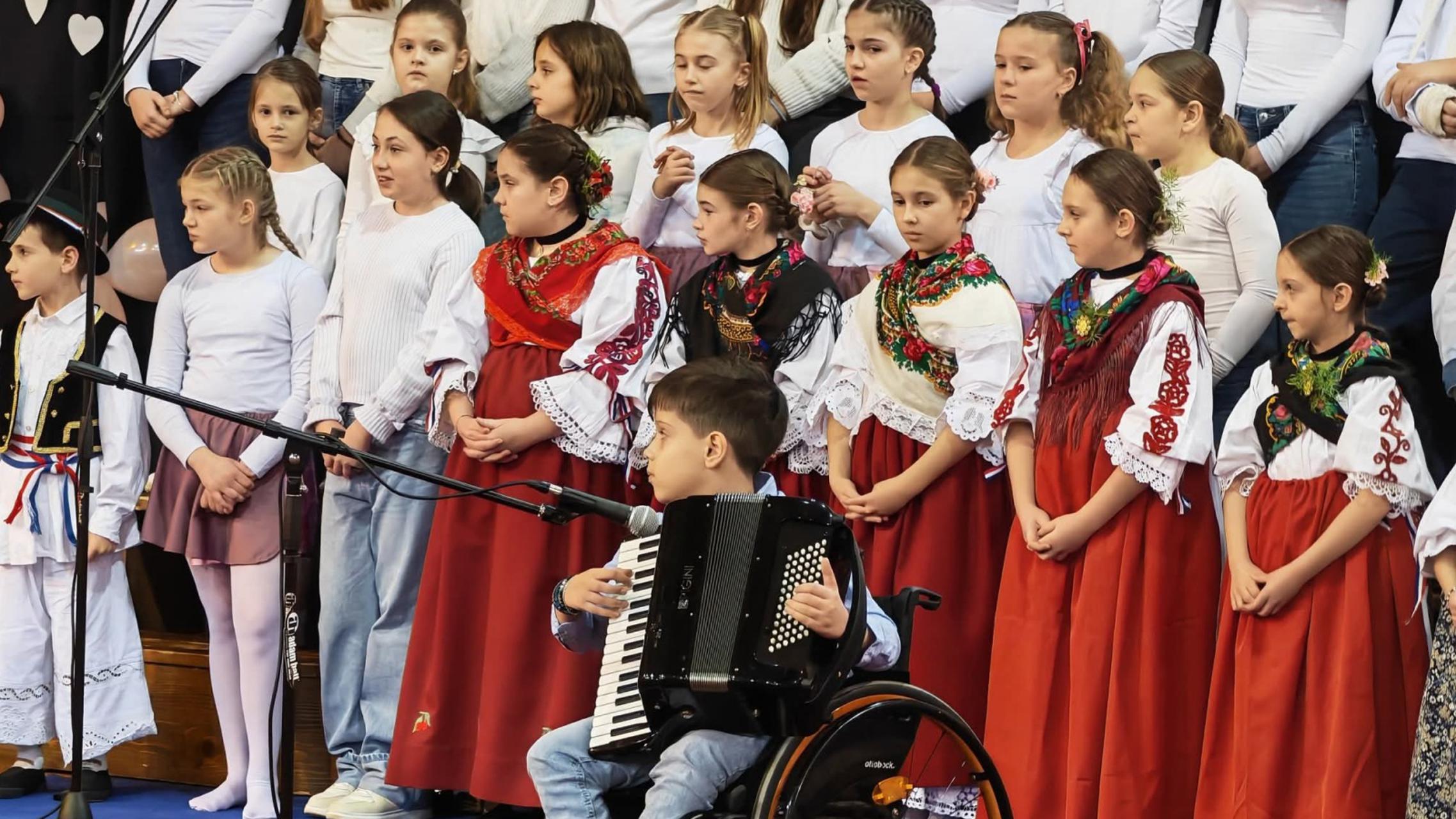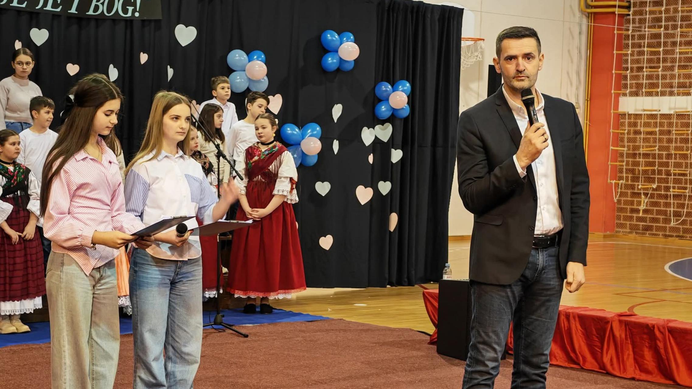 Nakon mise, program je nastavljen u sportskoj dvorani OŠ „Sibinjskih žrtava“ u kojem su sudjelovali učenici istoimene škole u zajedništvu s učenicima iz područne škole Slobodnica. Pjesmama, prigodnim recitacijama, plesnom točkom, izvođenjem skladbe na harmonici, ali i dječjim folklornim izvedbama dirnuli su srca prisutnih s naglaskom na radost susreta, na inkluziju, ali i međusobno prihvaćanje i solidarnost, te tako ukazali na prihvaćanje različitosti kao vrijednosti u ozračju dostojanstva i zajedništva.