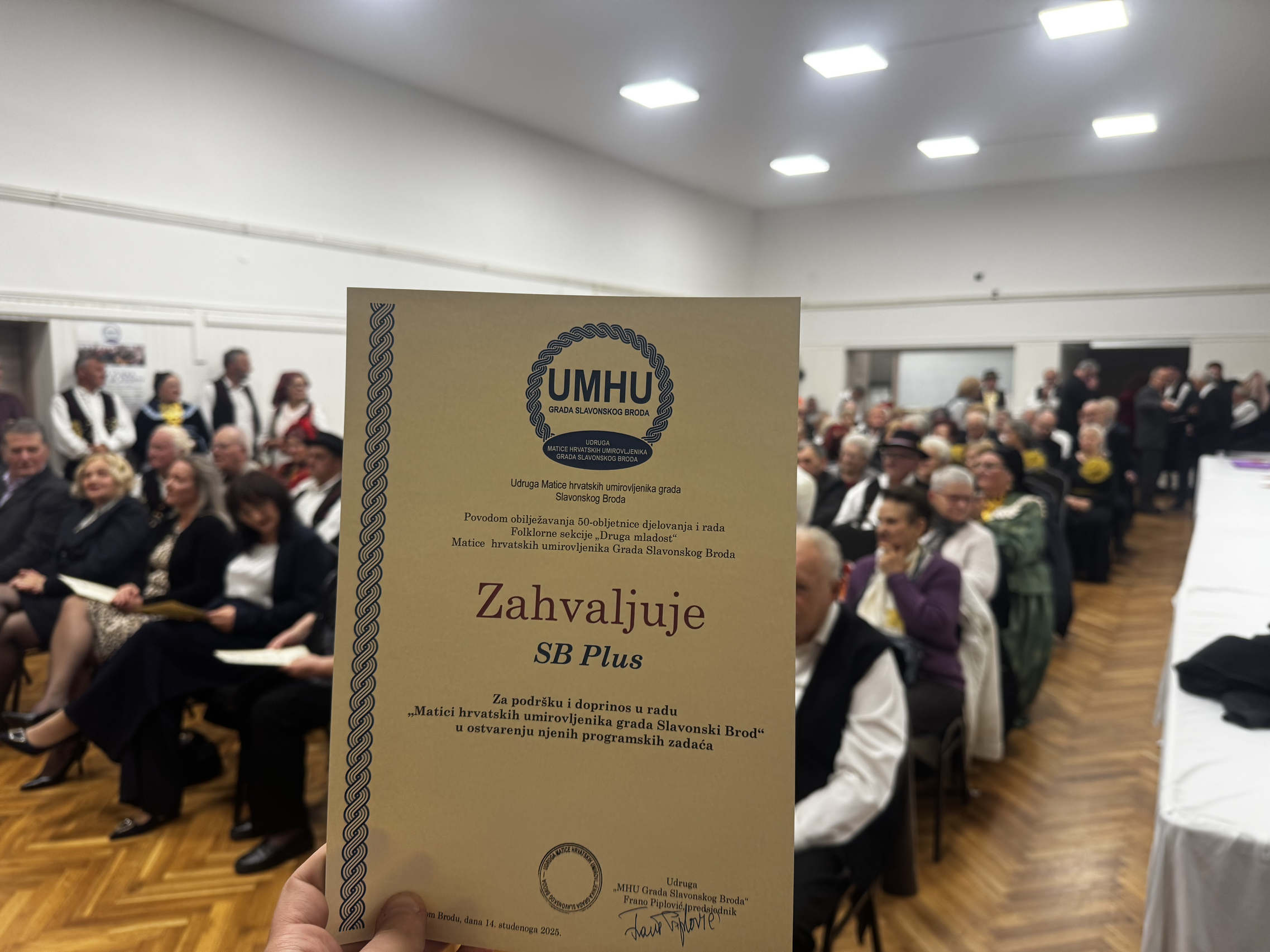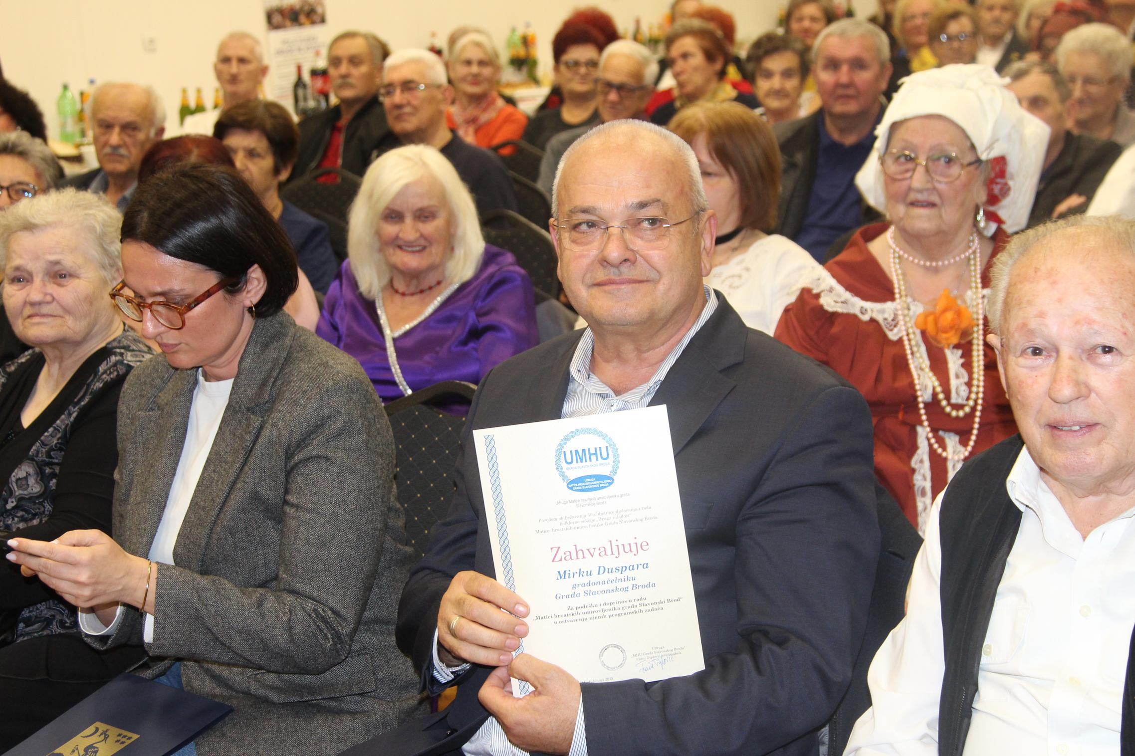 SLAVONSKI BROD - Folklorna sekcija „Druga mladost“ Matice hrvatskih umirovljenika ove godine obilježava veliki jubilej - 50 godina djelovanja. Tim povodom Udruga MHU Grada Slavonskog Broda organizirala je svečanu proslavu u prostoru Matice u domu MO Andrija Hebrang.