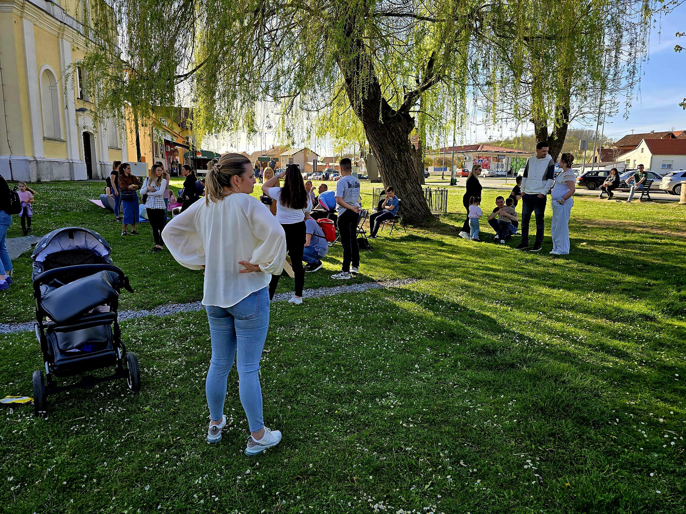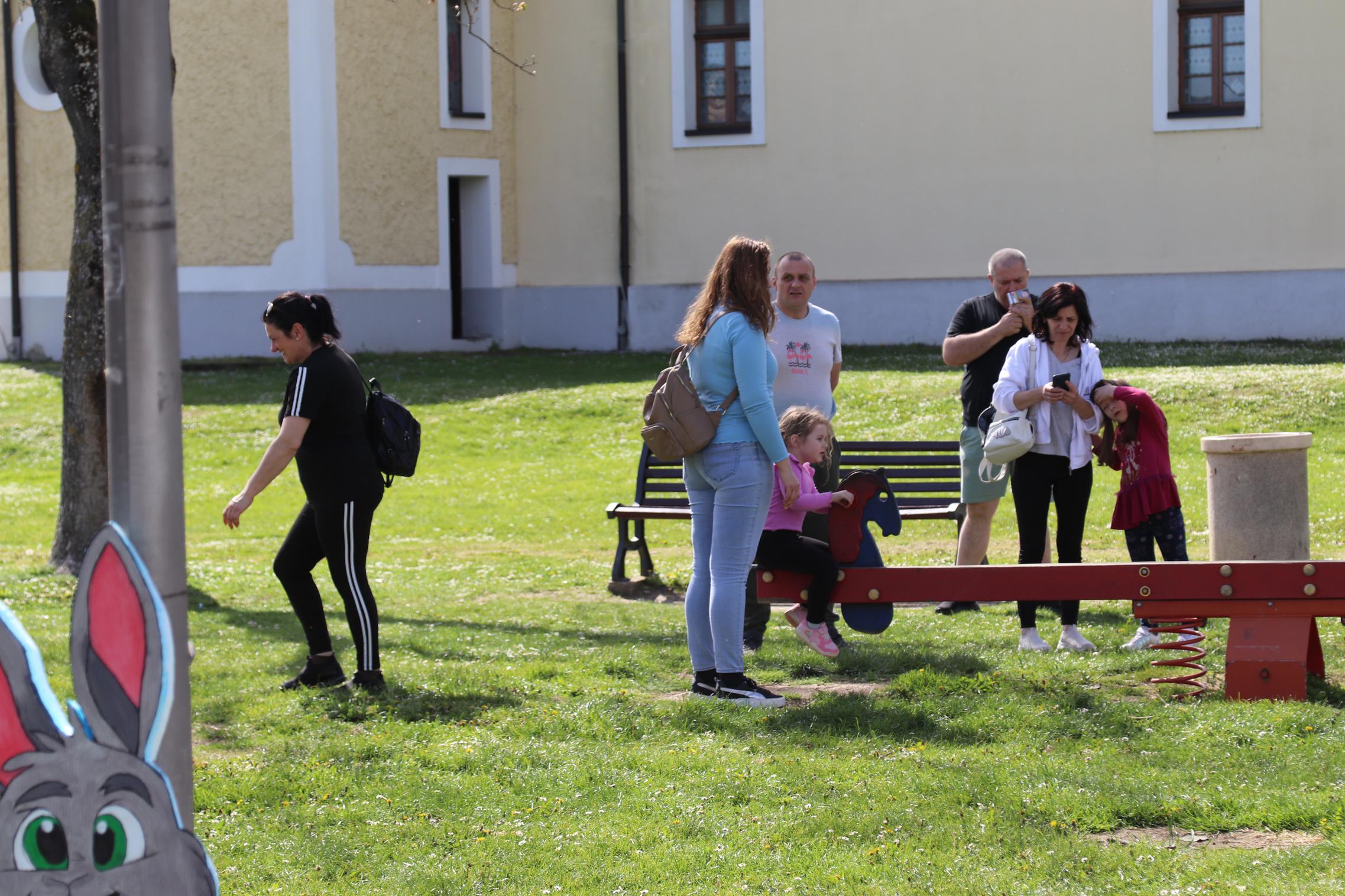 U sibinjskom parku i ovog su Uskrsnog ponedjeljka uživali u druženju i avanturama, a stigli su iz svih krajeva Brodsko-posavske županije. Bilo je i onih iz Osijeka, Zagreba, Njemačke,... koji su stigli u posjet rodbini. Rado su nam pozirali tijekom igranja društvene igre Čovječe ne ljuti se. U velikim sredinama takve 'vanjske instalacije' ne bi preživjele noć odnosno odoljele uličnim vandalima. I nešto starija djeca stoga su bila oduševljena ponudom koja ih je uspješno odvojila od inače im toliko milih ekrana.