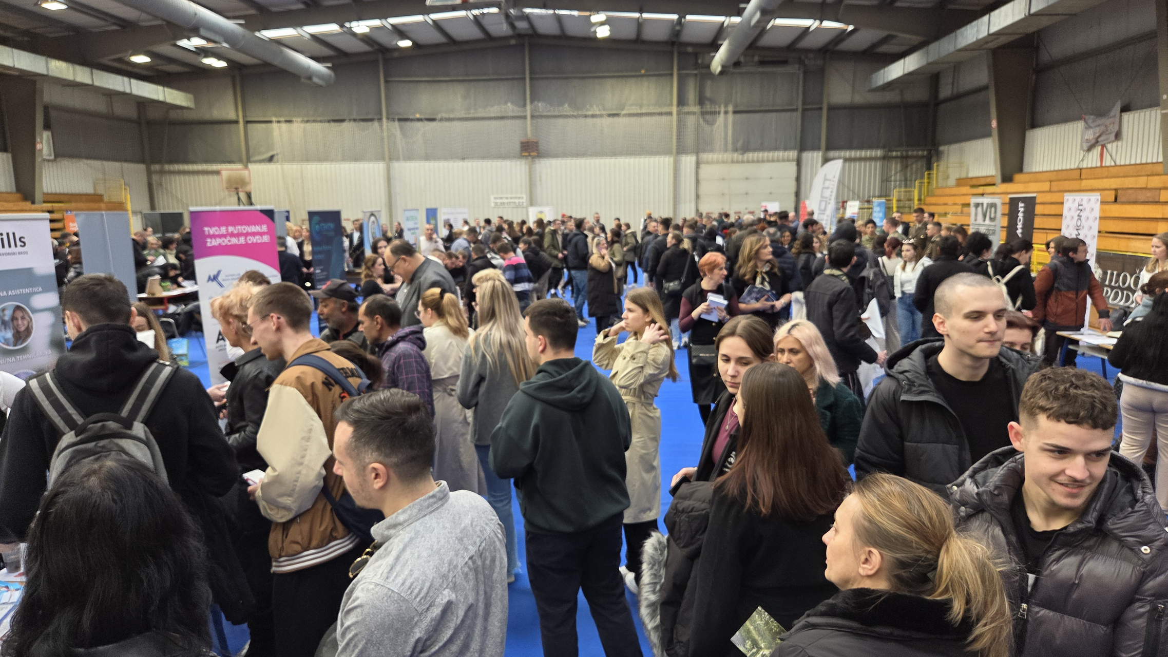 SLAVONSKI BROD - Sve relevantne dionike tržišta rada okupio je danas Hrvatski zavod za zapošljavanje u Sportskoj dvorani Brod u Slavonskom Brodu. Grad na Savi našao se među onima u kojima su organizirani Dani poslova 2026. koji svake godine tradicionalno pružaju priliku za izravan susret poslodavaca i nezaposlenih, među kojima su uvijek i brojni učenici te studenti.